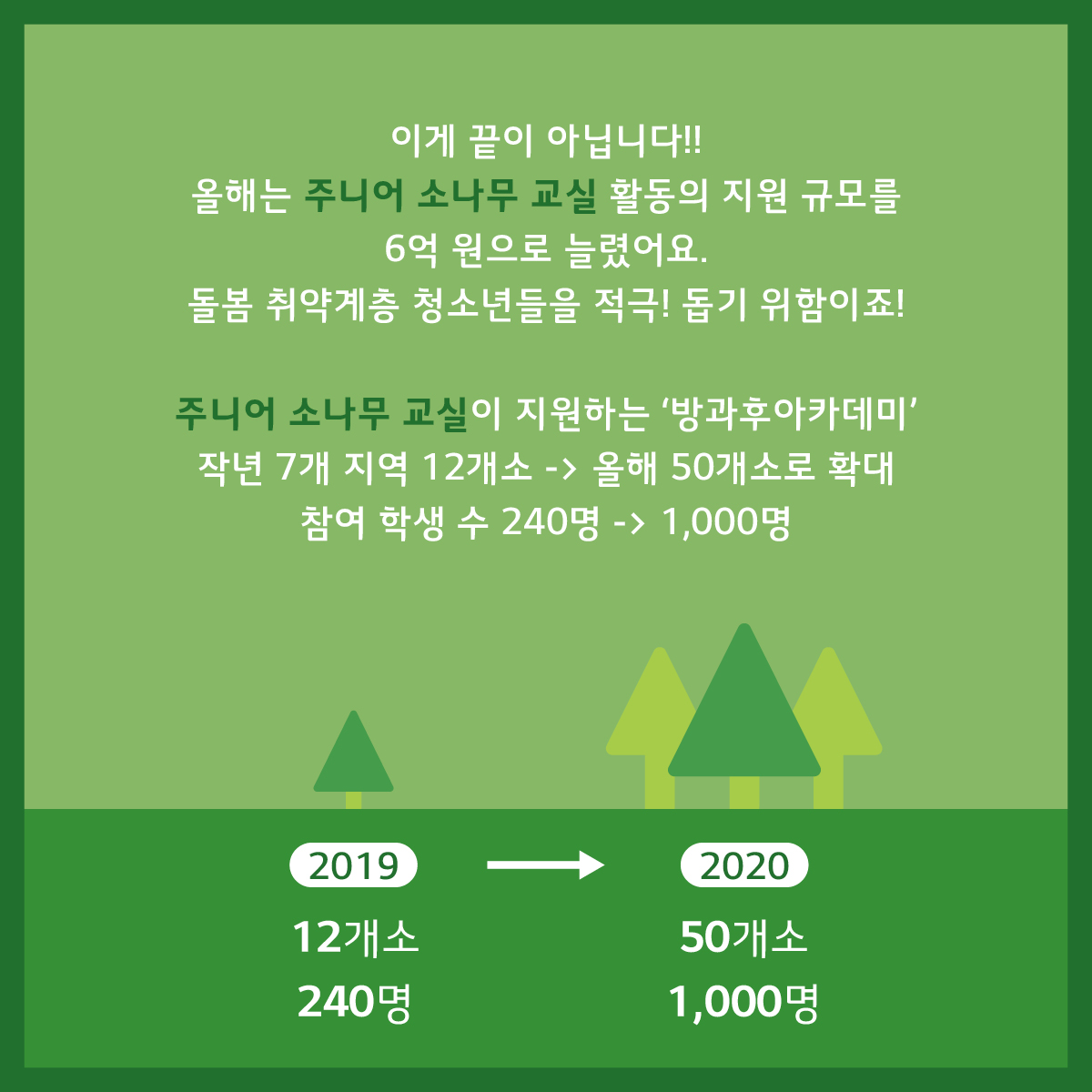 올해는 주니어 소나무 교실 활동의 지원 규모를