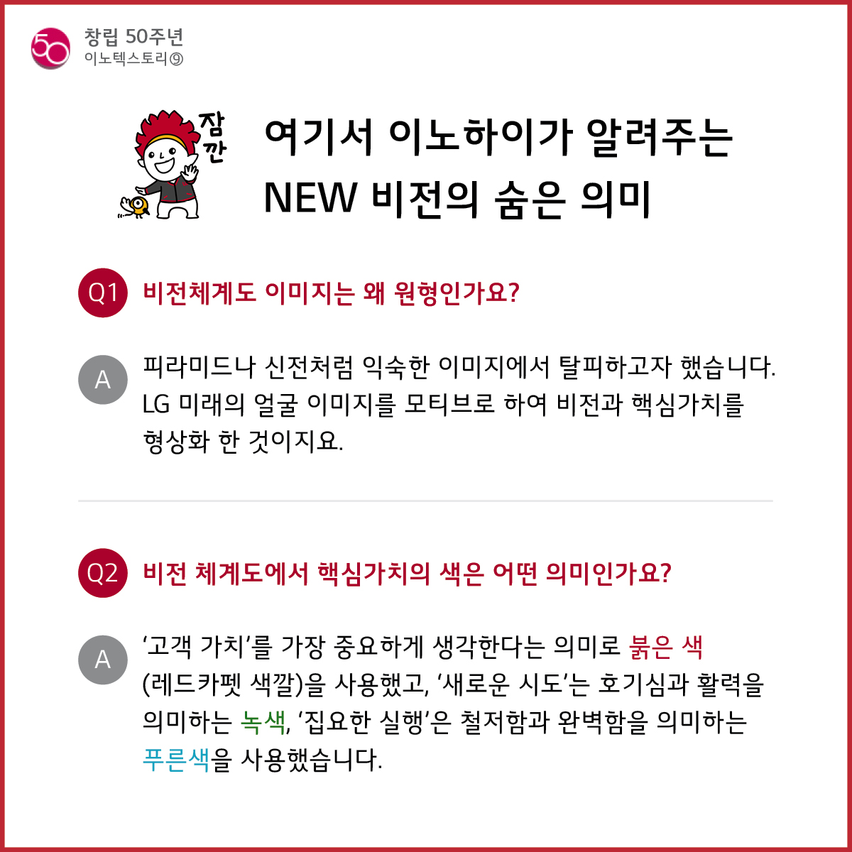 LG 미래의 얼굴 이미지를 모티브로 하여 비전과 핵심가치를