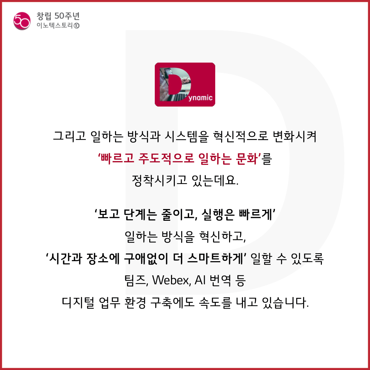 그리고 일하는 방식과 시스템을 혁신적으로 변화시켜