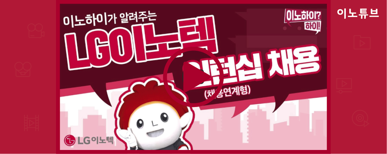 People&Culture [이노하이? 하이!] 이노하이가 알려주는 LG이노텍 인턴십 채용(INNO-STEP, 채용연계형 인턴십) 2020. 11. 5. 11:02 [이노하이?하이!] 이노하이가 알려주는 LG이노텍 인턴십 채용(INNO-STEP, 채용연계형 인턴십) LG이노텍 유튜브 바로보기 ▶youtu.be/rRW079Xr41I 공유하기 게시글 관리 LG이노텍 Newsroom 'People&Culture' Related Articles [2020년 LG이노텍 브랜드 필름] '미래를 꿈꿀 수 있는 또 다른 혁신, LG이노텍이 만들어 갑니다' [LG이노텍 50주년 이노텍스토리]10년을 기다린 KOSPI 상장 도전과 도약 LG이노텍 예비광학인재들의 하루!(연세대 광과학공학과 소개) PRIDE, LG이노텍