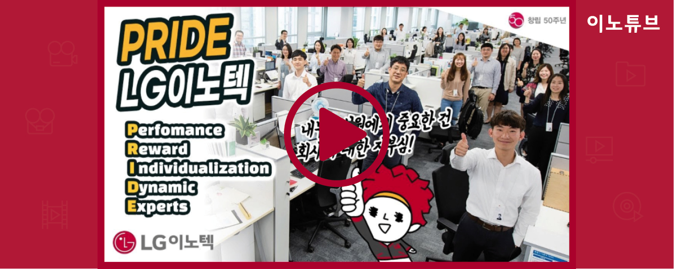 People&Culture [LG이노텍 50주년 이노텍스토리] PRIDE LG이노텍 2020. 12. 21. 10:10 [LG이노텍 50주년 이노텍스토리] PRIDE LG이노텍 LG이노텍 유튜브 바로보기 ▶ youtu.be/MbH01sSm62I 공유하기 게시글 관리 LG이노텍 Newsroom 'People&Culture' Related Articles LG이노텍 초록우산 어린이재단과 함께하는 '방과후아카데미' 후원식 현장 스케치 이노하이가 LG이노텍 서울역 거점오피스를 찾아가보았다 사회적 거리두기 하면서 사회공헌 활동을 한다? LG이노텍 비대면 온택트 사회공헌 활동 [LG이노텍 50주년 이노텍스토리] 새로이 눈뜨다, LG이노텍이 꿈꾸는 미래 New 비전 수립