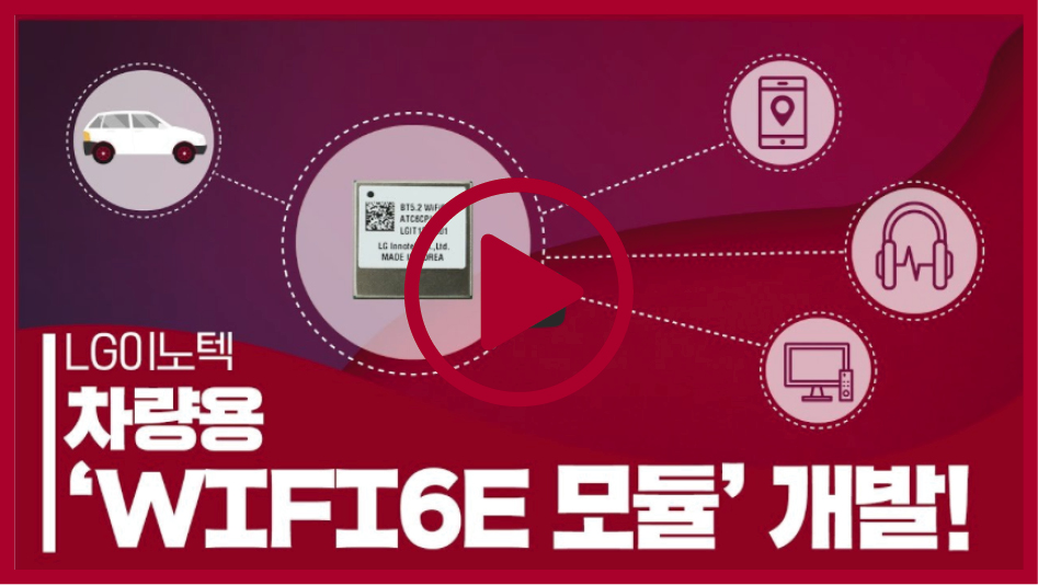 Technology LG이노텍, 세계 최초 차량용 WIFI6E 모듈 개발! 2021. 3. 8. 10:36 LG이노텍 유튜브 바로보기 ▶ youtu.be/_6ibsNpd0VM 공유하기 게시글 관리 LG이노텍 Newsroom 'Technology' Related Articles [당첨자 발표] QUIZ! 'OOO'에 들어갈 모듈 명칭은 무엇일까요? [EVENT] QUIZ! 'OOO'에 들어갈 모듈 명칭은 무엇일까요? 머니투데이방송 - 미래 차 핵심 부품 '디지털 키' 생태계 급성장 LG이노텍 차량용 '디지털 키 모듈' 개발!