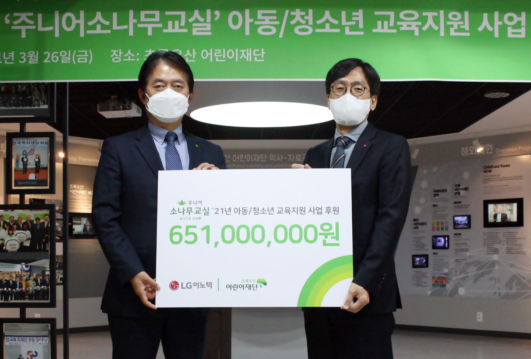 이날 행사에서 LG이노텍은 대표 사회공헌활동인 ‘주니어 소나무(소재·부품 꿈나무)교실’ 활동 확대를 위해 어린이재단에 연간 6.5억원을 후원하기로 했다.