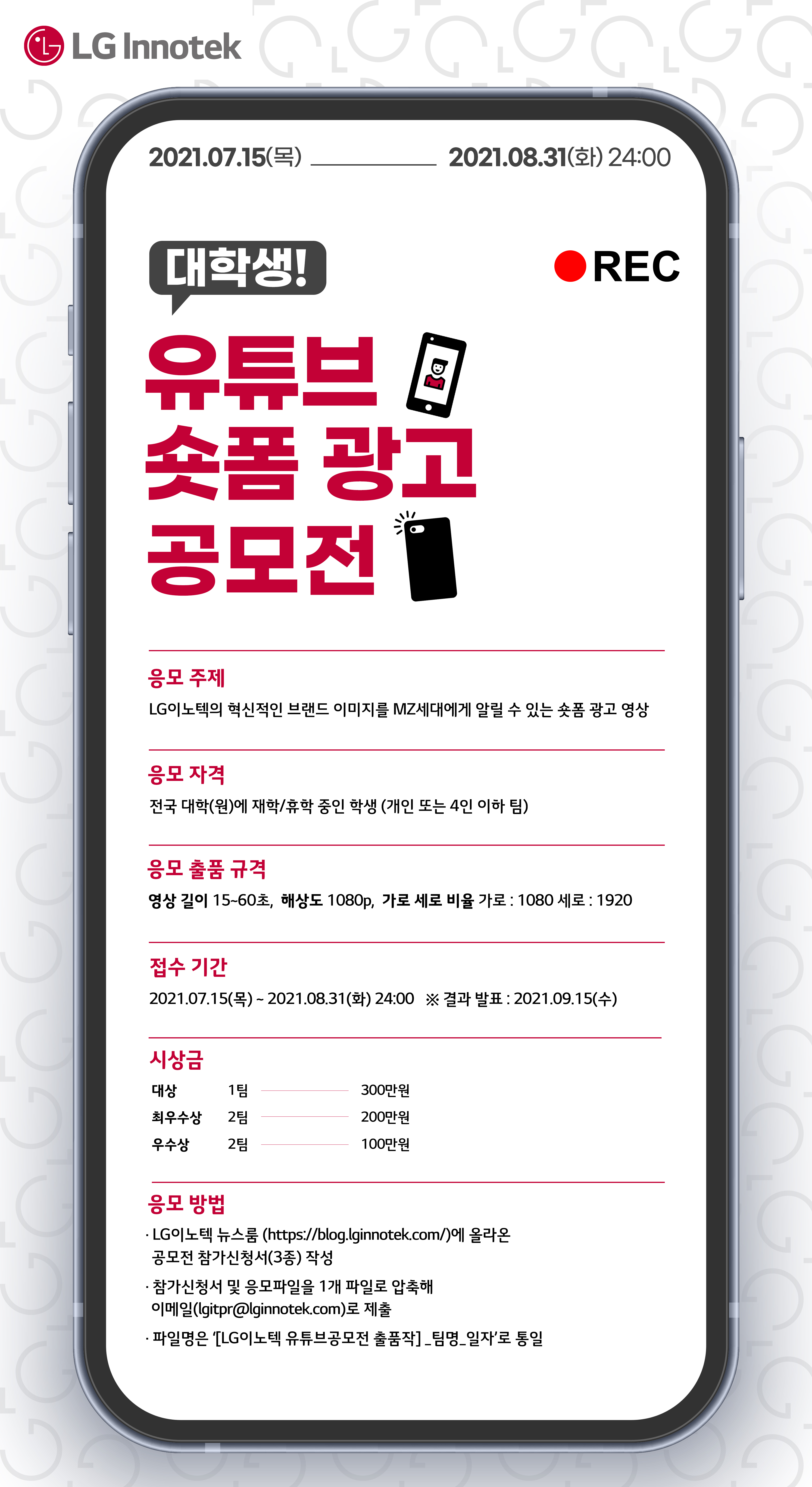 LG이노텍에서 대학생 숏폼 광고 공모전을 진행합니다.
