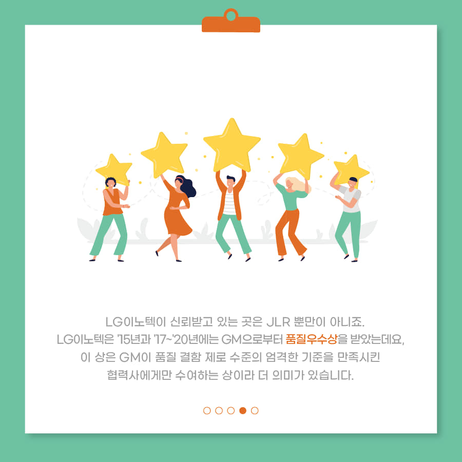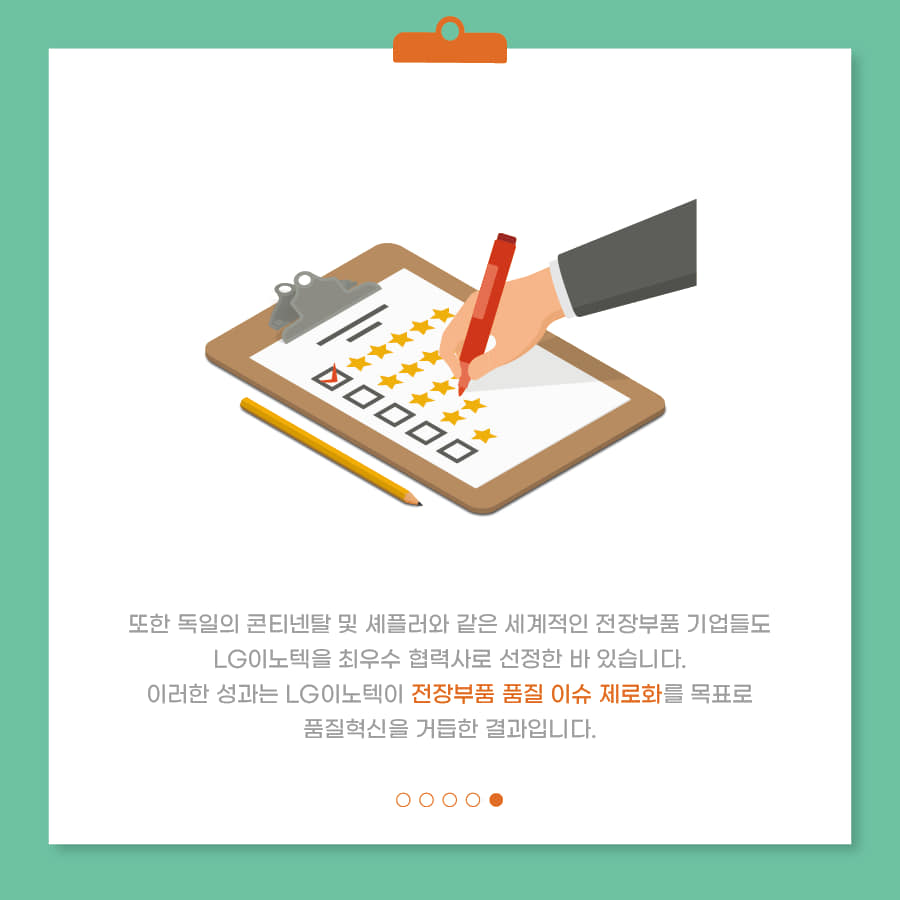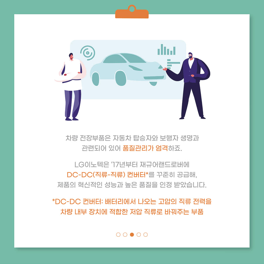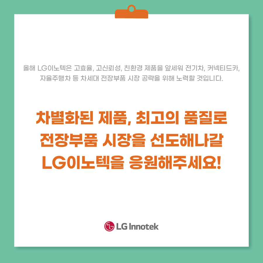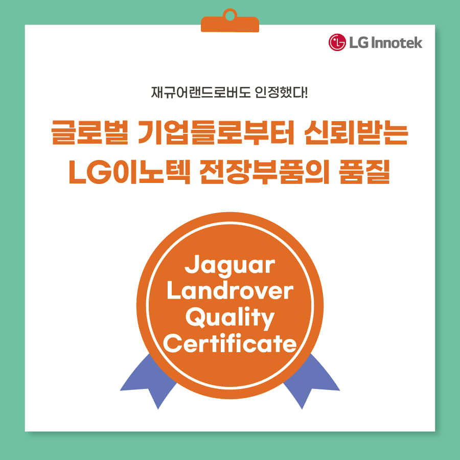 Technology 글로벌 기업들로부터 신뢰받는 LG이노텍 전장부품의 품질 2021. 9. 29. 18:06 공유하기 게시글 관리 LG이노텍 Newsroom 'Technology' Related Articles 환경을 살리는 자석이 있다? LG이노텍의 세계에서 가장 강력한 '친환경 마그넷' 개발 이야기 세계로부터 인정받는 LG이노텍의 전장부품 Everything about LG Innotek's Camera Module for Smartphone LG이노텍의 스마트폰용 카메라모듈에 대한 모든 것
