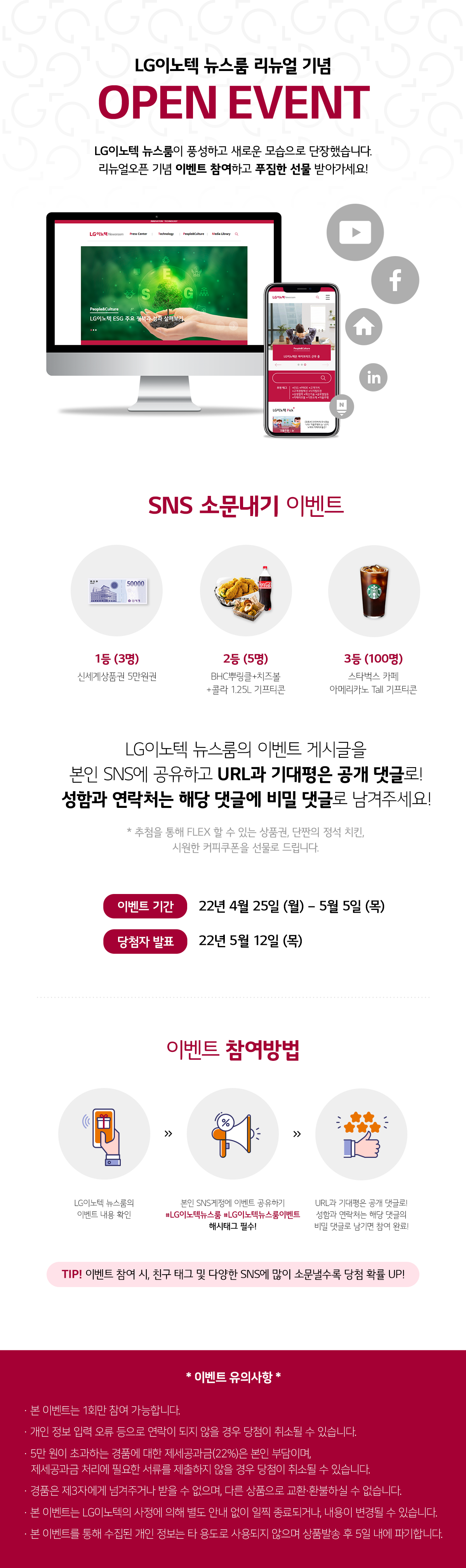 - 필수 해시태그 : #LG이노텍뉴스룸 #LG이노텍뉴스룸이벤트