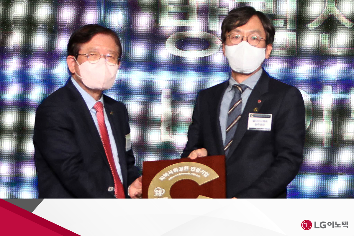 LG이노텍은 지속적인 사회공헌 활동의 결과로 2021년, 마곡, 구미, 광주, 평택 총 4곳의 사업장이 지역사회공헌 인정기업에 선정되었습니다. 또한 지속적으로 지역사회 복지 사각지대를 최소화하는 데 기여한 점을 높이 평가받아 보건복지부 장관상을 수상하기도 했죠.