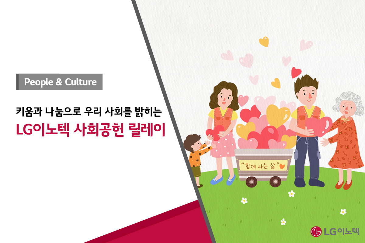 LG이노텍 임직원은 나누는 만큼 더 커지는 기쁨을 느끼며 세상을 따뜻하게 물들이고 있습니다. 청소년이 마음껏 꿈을 펼칠 수 있고, 지역사회와의 상생으로 함께 발전하는 사회를 만들기 위해 앞으로도 진심을 다하는 LG이노텍이 되겠습니다.