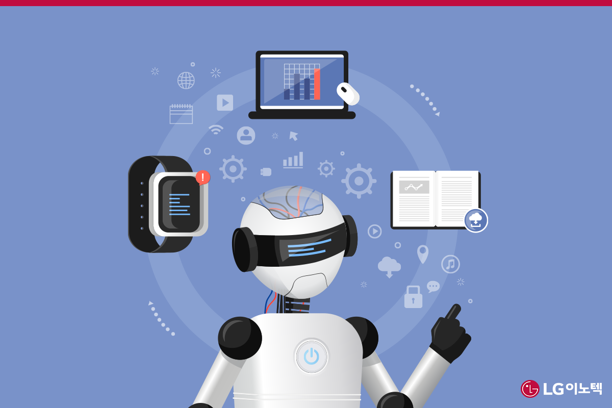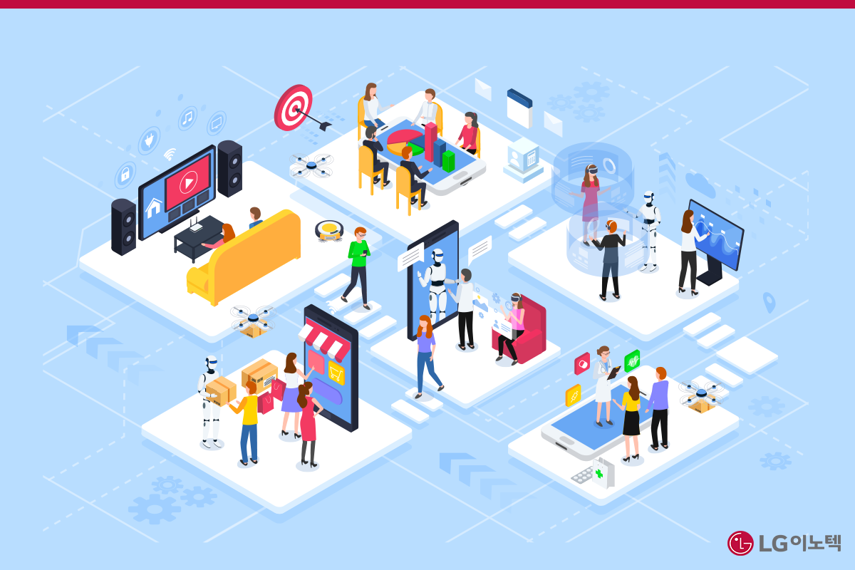 LG이노텍은 제품 설계에서 생산까지, 전 과정에 DX 기술을 도입하고 있습니다. DT 기술을 활용하고 있는 영역은 크게 AI/빅데이터 기반의 R&D 플랫폼과 스마트 팩토리로 구성되어 있어요. 보다 빠르고 정밀하게 제품을 설계하고, 그 동안의 생산 데이터로 최적화된 가상의 개발·검증·생산 프로세스를 구축하여 고객에게 더욱 새롭고 혁신적인 가치를 제공하는 것이 LG이노텍의 목표입니다.