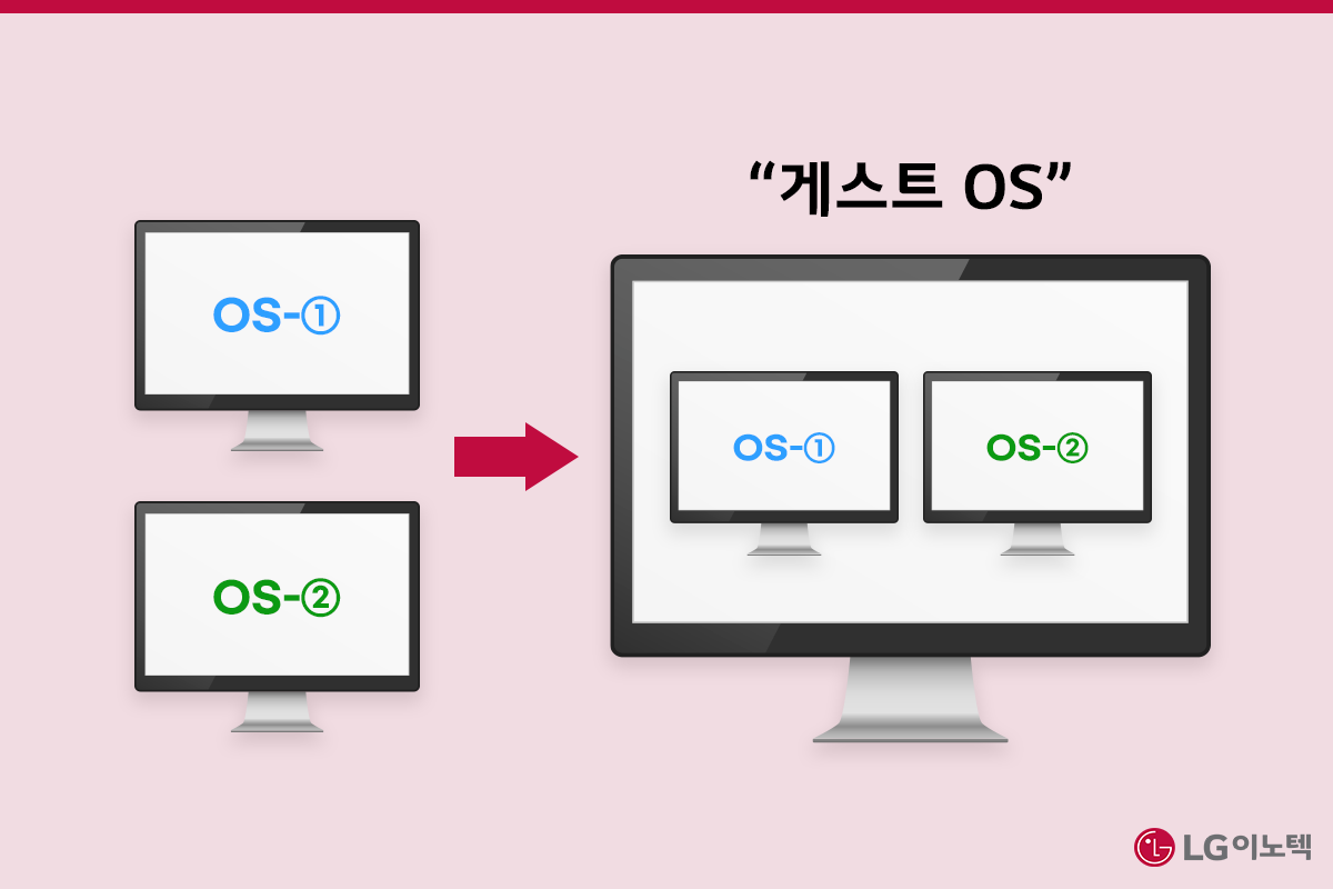 클라우드 컴퓨팅 서비스를 가능하게 만드는 기술 중 하나는 가상화(Virtualization)입니다. 가상화는 하나의 기기 안에 여러 개의 운영 체제(OS*)를 동시에 실행할 수 있도록 여러 개의 가상 하드웨어를 만드는 기술이에요. 1개의 기기에 1개의 운영 체제가 실행되는 것이 일반적인데요. 가상화를 통해 여러 개의 운영 체제를 1개의 기기에서 실행한다면 서버를 대량으로 구매하지 않을 수 있습니다. 이러한 운영 체제를 게스트 OS라고 부르죠.