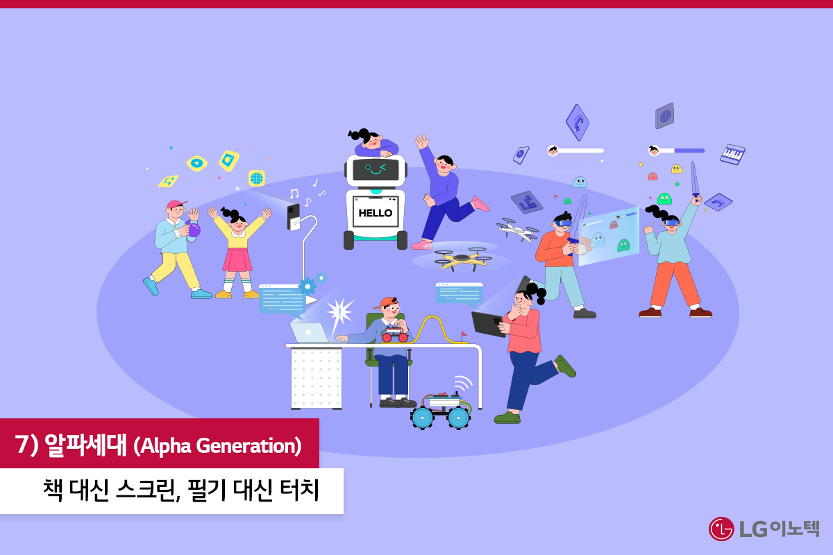 MZ세대의 다음 주자인 알파세대는 2010년대 초반에서 2020년대 중반 사이에 태어난 세대를 말합니다. 1980년대생 밀레니얼 세대 부모에게서 태어난 이들은 이전 세대들과 완전히 다른 방식으로 자랐으며, 태어날 때부터 스마트폰과 이를 기반으로 한 플랫폼을 접했기에 디지털 기기 사용에 익숙하다는 특징을 갖고 있어요. 자기중심성이 강한 알파세대는 스스로를 셀럽으로 여기며, 쉽게 인플루언서가 될 수 있는 틱톡을 주요 SNS로 활용합니다. ‘국영수코’ 시대라 불릴 정도로 코딩 교육이 중시되고 있는 만큼 코딩 학습 또한 자연스럽게 받아들이고요. 소비와 투자를 아우르는 경제 교육을 조기에 받고 있다는 점 또한 알파세대의 특징입니다.