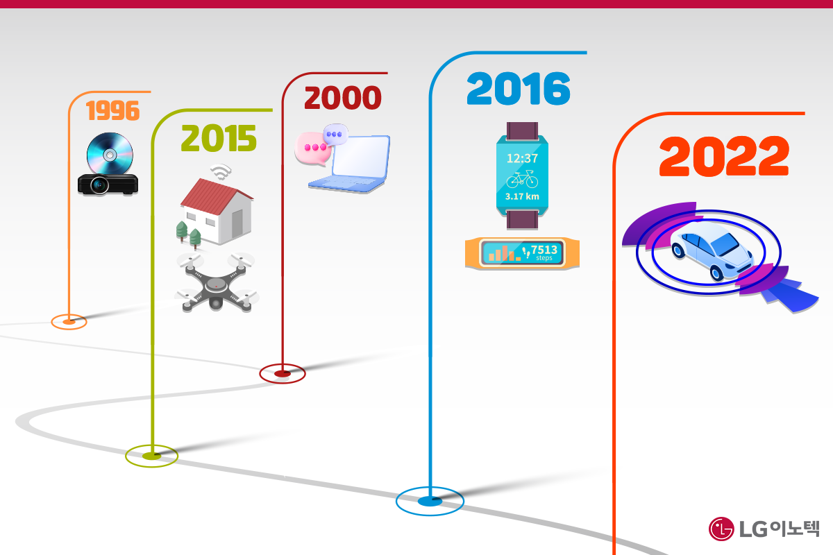 LG이노텍은 자율주행 5단계를 달성하기 위한 미래차 토털 솔루션을 설계해가고 있습니다. BCG*(보스턴컨설팅그룹)의 전망에 따르면 가까운 미래인 2025년에 자율주행차의 시장 규모가 약 420억 달러에 이를 것이며, 2035년에는 770억 달러 규모로 성장할 것이라고 하죠. 그만큼 자율주행차 기술 개발에 대한 열망은 전세계적으로 뜨겁습니다.