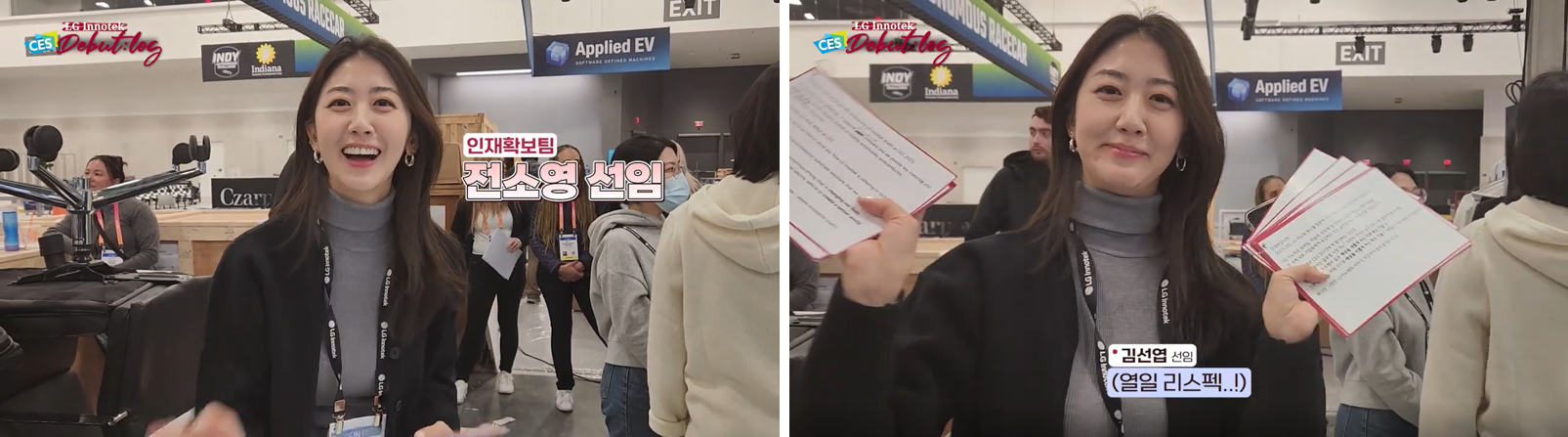 이번 CES 2023의 LG이노텍 전시 부스 랜선 투어를 도와준 인재확보팀의 전소영 선임도 현장에서 만났습니다. 전시 기간 동안 메인 프레젠터 역할을 담당한 일등인재라구요~~👍