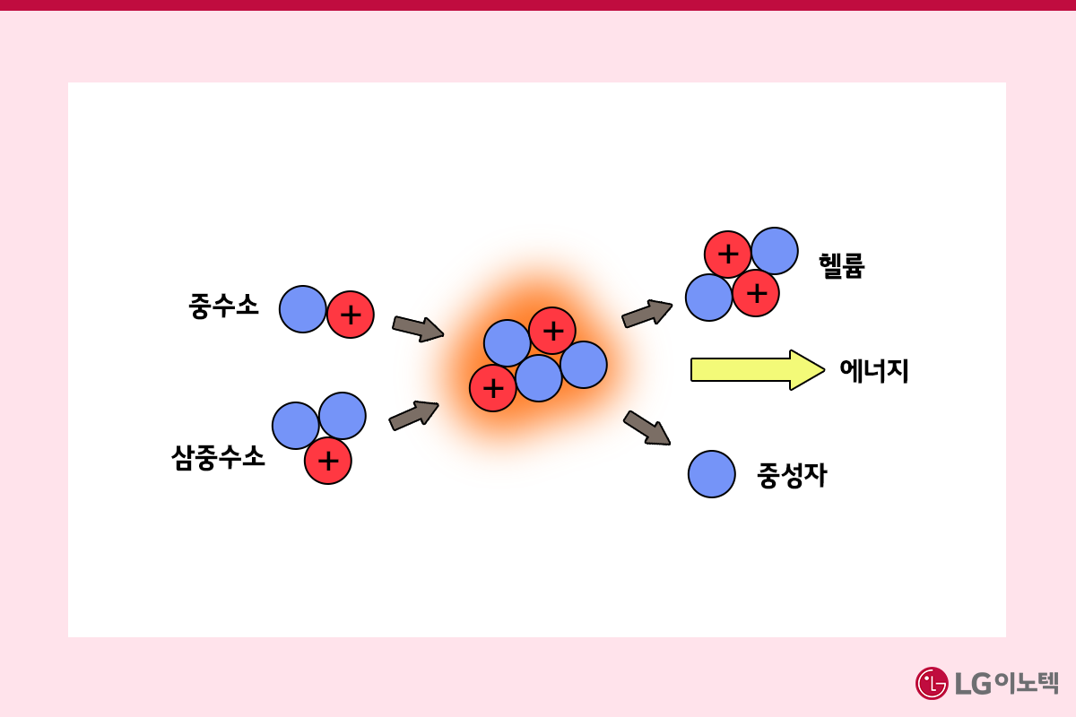 핵융합이란 가벼운 핵들이 결합하여 무거운 핵이 되는 개념이에요. 양성자 1개ㆍ중성자 1개로 이루어진 중수소와 양성자1개ㆍ중성자 2개로 이루어진 삼중수소가 충돌하면 헬륨과 중성자가 생성되는데요. 이 과정에서 줄어든 질량이 에너지로 변환되는 것입니다. 아인슈타인의 특수상대성이론이 바로 핵융합을 설명하는 이론이죠. 기존의 화석연료와 비교해보면, 바닷물 1L로 석유 300L 분량의 에너지를 얻을 수 있고요. 300만 톤의 석탄 분량의 에너지와 100kg의 수소로 얻는 에너지의 양이 같아요. 환경오염 물질이 적게 배출된다는 점에서도 개발할 가치가 충분합니다. 핵융합 발전으로 생기는 방사성 폐기물은 핵분열에 비해 아주 적고, 일부 발생하는 방사성 물질은 질량이 절반으로 줄어들기까지 걸리는 기간인 반감기가 수십 년 정도로 짧기 때문이죠.