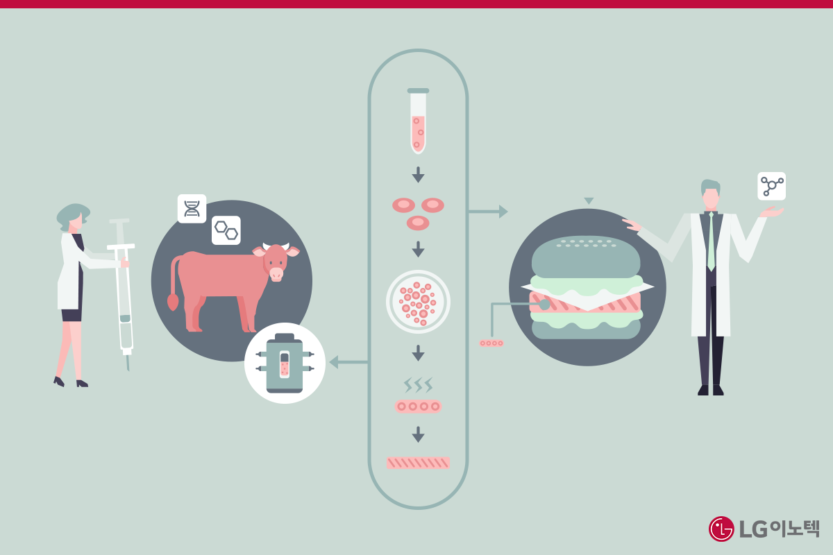 콩으로 고기와 비슷한 식감과 맛을 구현해내어 콩고기라고도 불리는 식물성 대체육은 현재 시중에서도 어렵지 않게 구매할 수 있어요. 나아가 배양액 안에서 줄기세포를 키워 고기를 만드는 배양육은 실제 축산물과 영앙성분이 동일하다는 점에서 많은 이들이 상용화를 기다리고 있습니다. 가축을 사육하여 고기를 얻는 기존 육류 생산 방식보다 들이는 에너지 대비 생산 효율이 가장 뛰어난 데다 온실가스 배출량도 획기적으로 줄일 수 있다고 해요.
