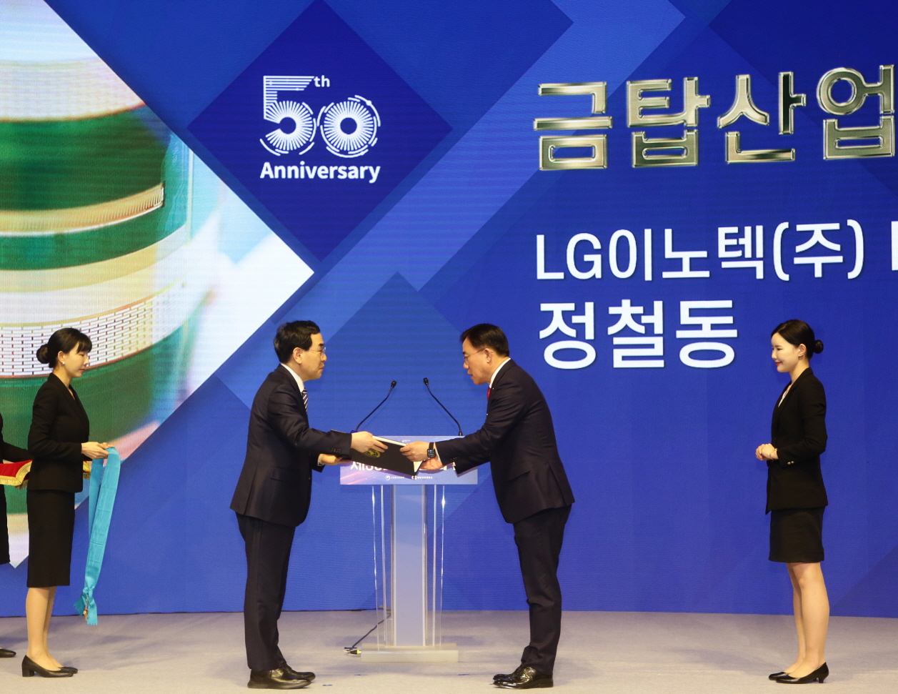 정철동 LG이노텍 사장이 15일 대한상공회의소(회장 최태원)가 개최한 ‘제50회 상공의 날’ 기념식에서 최고 영예인 금탑산업훈장을 수상했다.