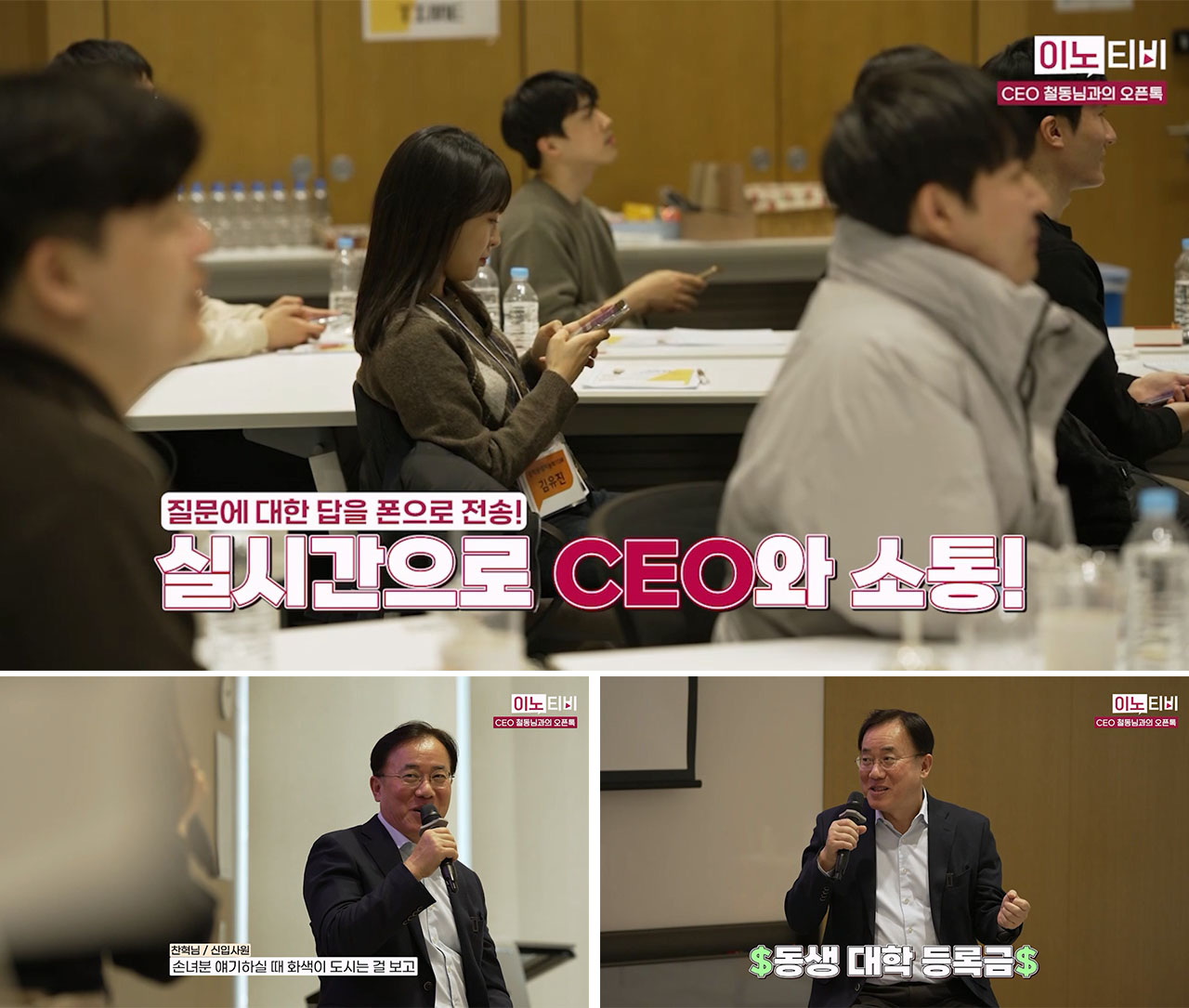 다양한 질문에 대해 철동님의 답변을 현장에서 바로 받을 수 있는 오픈톡 시간을 가졌는데요. 여가시간에는 손녀와 함께 동물의 숲 게임을 즐기는 자상한 할아버지 모먼트와 MBTI 공개까지! CEO 철동님의 진솔한 답변과 따뜻한 격려가 LG이노텍의 새로운 가족인 신입사원들에게 큰 감동이 되었다고 하네요😂