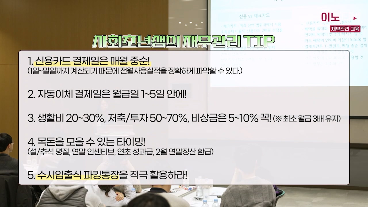 3교시는 사회초년생에게 피가 되고 살이 되는 💰재무관리 꿀팁 강의 시간입니다! 돈은 버는 것만큼이나 모으는 게 무엇보다도 중요한데요. 하지만 시간을 따로 내서 듣기엔 귀찮고 부담스럽기도 한 것이 바로 재무관리 강연이잖아요? 자, 바쁜 현대인들을 위해 핵심만 쏙쏙 뽑아냈습니다아~