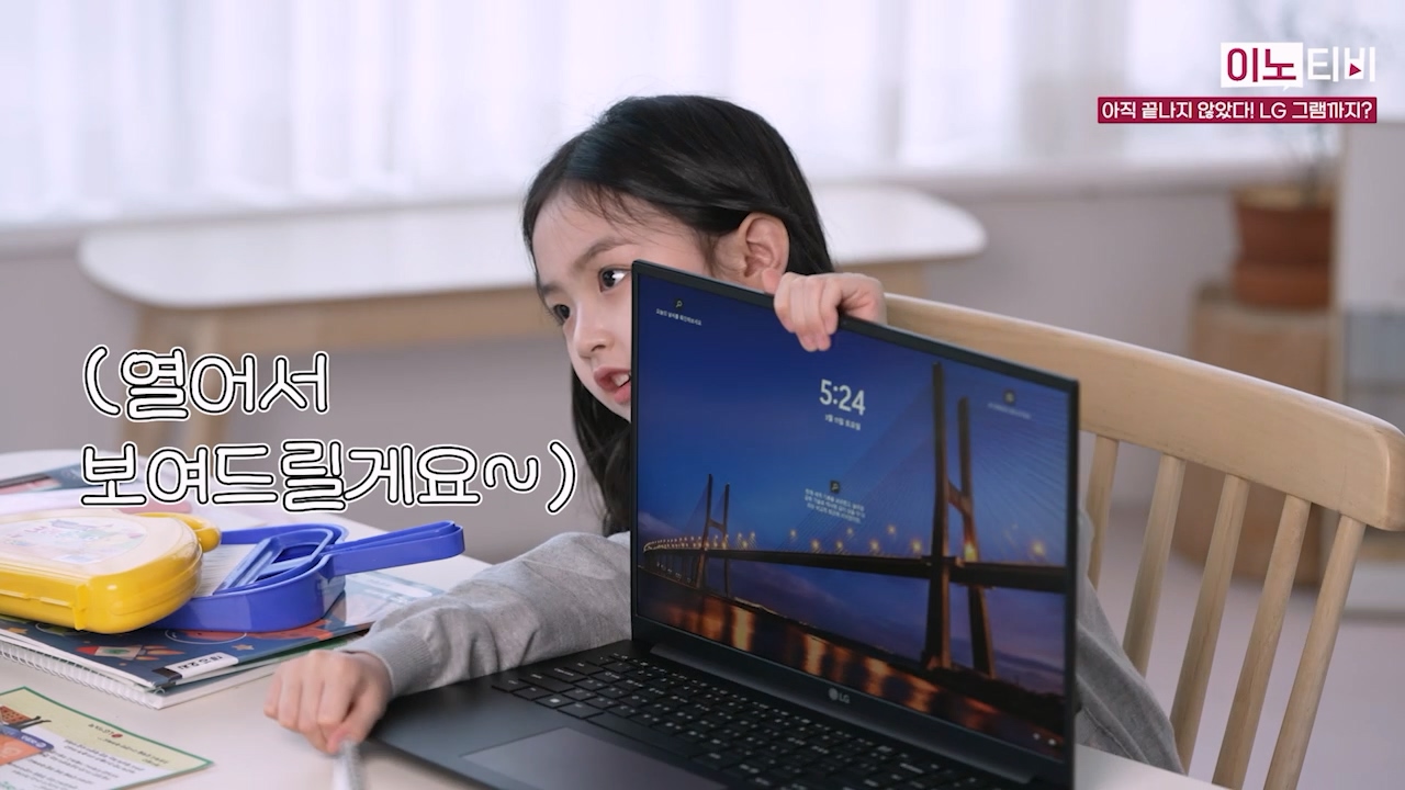 짜란~! 바로바로, LG그램 되시겠습니다! 💻 아이들에게도 부담 없는 가벼운 무게로, 어디든 가지고 다닐 수 있어 더욱 활용도가 높아요. 현서는 LG그램으로 파워포인트를 열심히 할 계획이라고 하네요! 👍