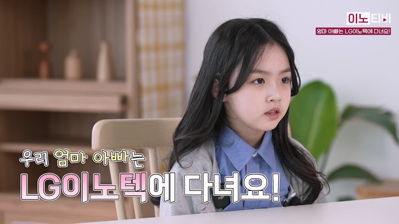 LG이노텍에서 부부의 연을 맺게 된 구성원들의 보물 같은 딸, 현서 어린이예요! 😍 올해 초등학교에 입학해서 이제 막 한 달을 조금 넘겼죠. 정철동 사장 아저씨가 준 선물을 소개하고 싶어 LG이노텍에 놀러 왔다고 해요. 현서는 어떤 선물을 받았을까요?