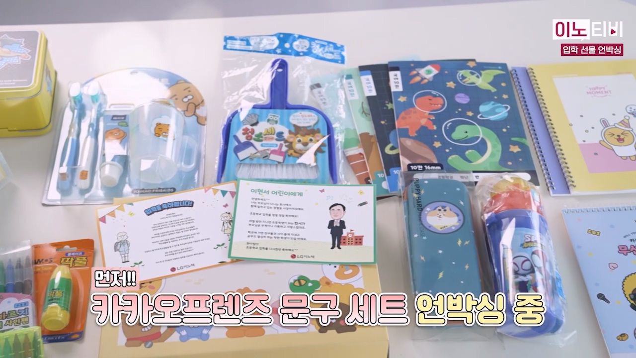 그래서 LG이노텍이 통 크게 준비했습니다! LG이노텍 구성원들의 자녀 초등학교 입학을 축하하는 선물 키트인데요. 어떤 선물을 받는지 궁금하시다면, 지금부터 주목해주세요! 💛
