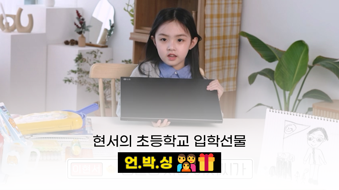 짜란~! 바로바로, LG그램 되시겠습니다! 💻 아이들에게도 부담 없는 가벼운 무게로, 어디든 가지고 다닐 수 있어 더욱 활용도가 높아요. 현서는 LG그램으로 파워포인트를 열심히 할 계획이라고 하네요! 👍