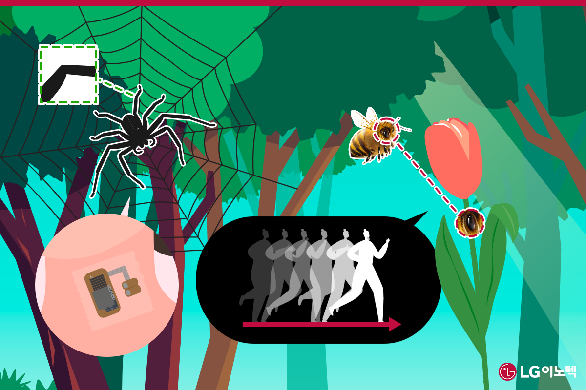 날아다니는 곤충들의 눈이 갖고 있는 시각 신경 기능을 모사한 초고속 광센서도 개발되었습니다. 곤충의 눈 속 점진적 신경세포가 지금까지 개발된 반도체 이미지 센서보다도 동작 인식을 더욱 효율적으로 한다는 것이 연구를 통해 밝혀졌기 때문인데요. 곤충의 눈을 닮은 광센서는 초당 1,200bit의 정보 전달은 물론, 0.01초부터 1,000초까지의 시간분해능과 99.2%의 높은 정확도로 물체의 정확도를 인식할 수 있답니다. 이 기술이 상용화될 수 있을 정도로 업그레이드된다면, 보다 더 세심하게 주변 물체를 인식하는 자율주행차가 탄생할 수도 있겠죠.