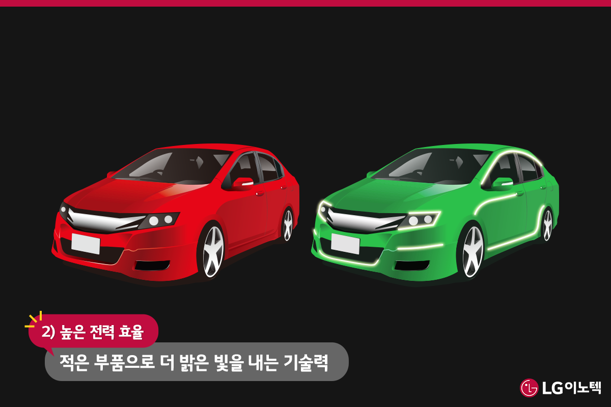2) 높은 전력 효율 – 적은 부품으로 더 밝은 빛을 내는 기술력