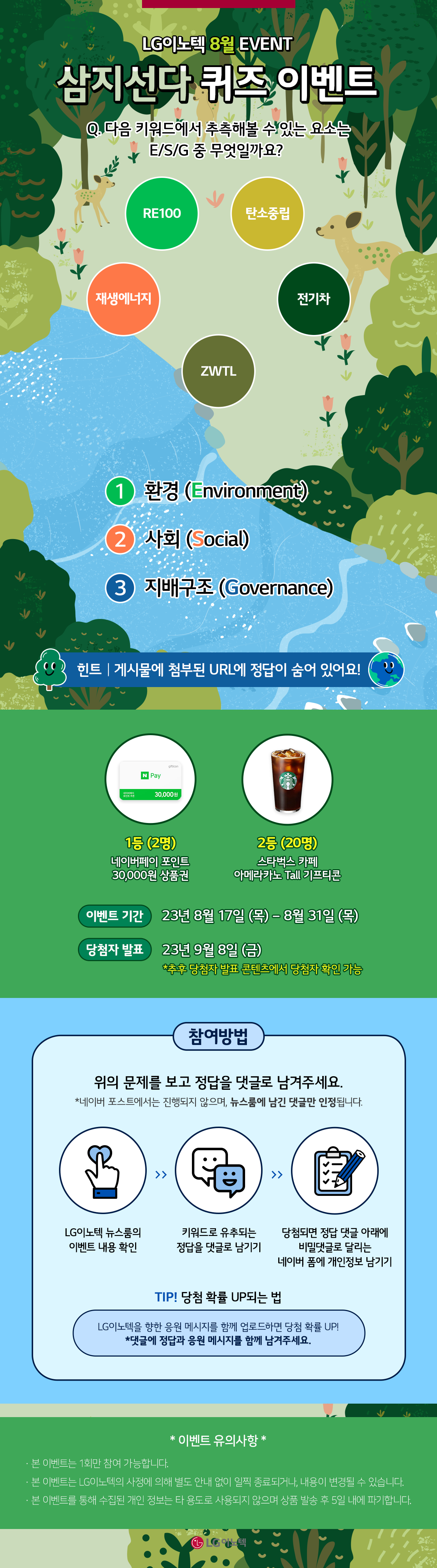 1) LG이노텍 뉴스룸 이벤트 게시글의 내용을 확인해주세요.