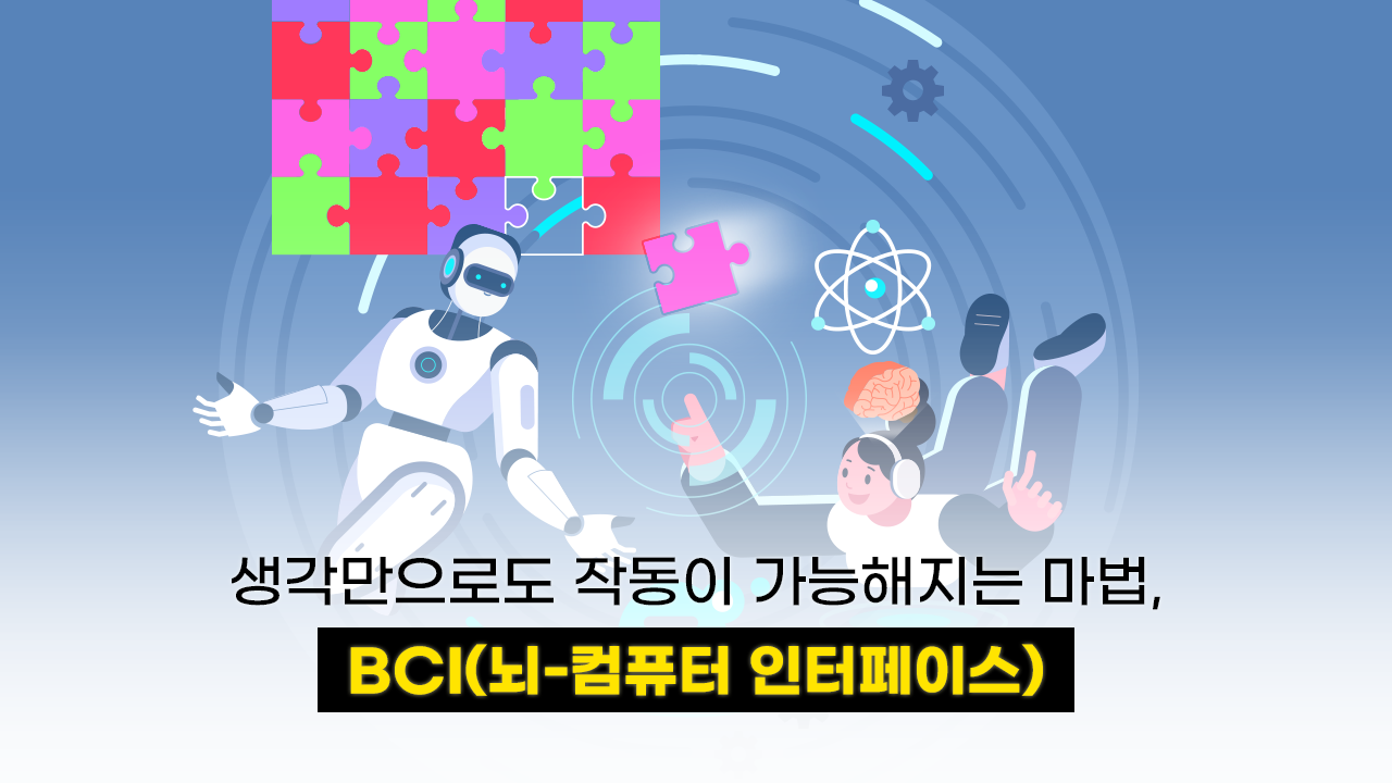 상상한 대로 프로그램이 작동되거나 글ㆍ그림 등이 자동으로 생성된다면 어떨까요? 뇌파로 컴퓨터를 사용할 수 있게 하는 BCI(Brain-Computer Interface)는 신체를 움직이지 않아도 된다는 이점이 있어 신체의 움직임이 불편한 이들에게는 희망과도 같은 기술인데요.