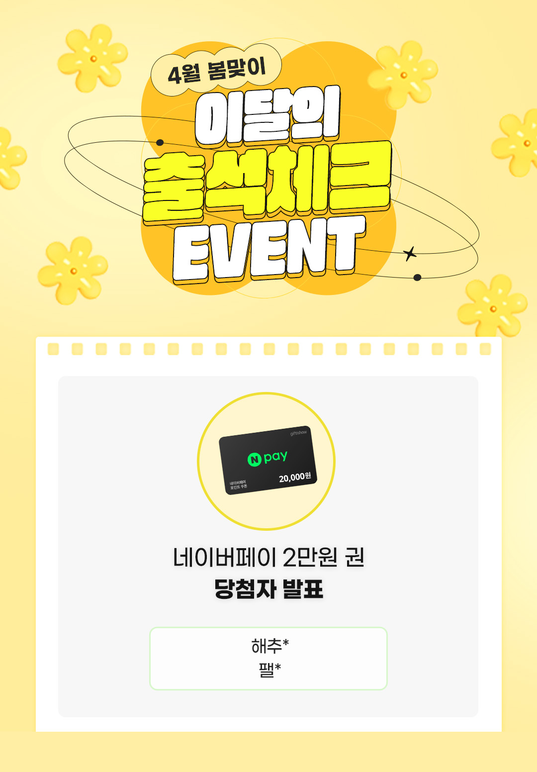 * 오기입된 정보로 인한 경품 미지급 책임은 당첨자 본인에게 있으며, 경품 재발송 및 추가 발송이 불가할 수 있습니다.