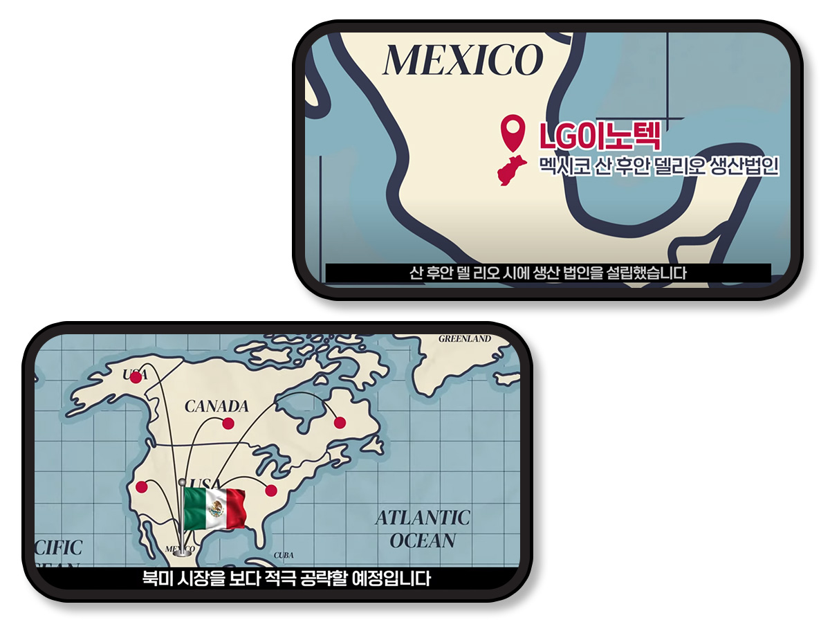 특히 LG이노텍의 멕시코 법인이 중요한 건 최근 북미자유무역협정으로 멕시코가 글로벌 가치사슬의 중심지로 자리매김하고 있기 때문입니다. 이러한 배경에 발맞춰 LG이노텍 멕시코 법인은 최근 조직을 확대 개편하고 생산 품목 다양화에 집중하고 있습니다.
