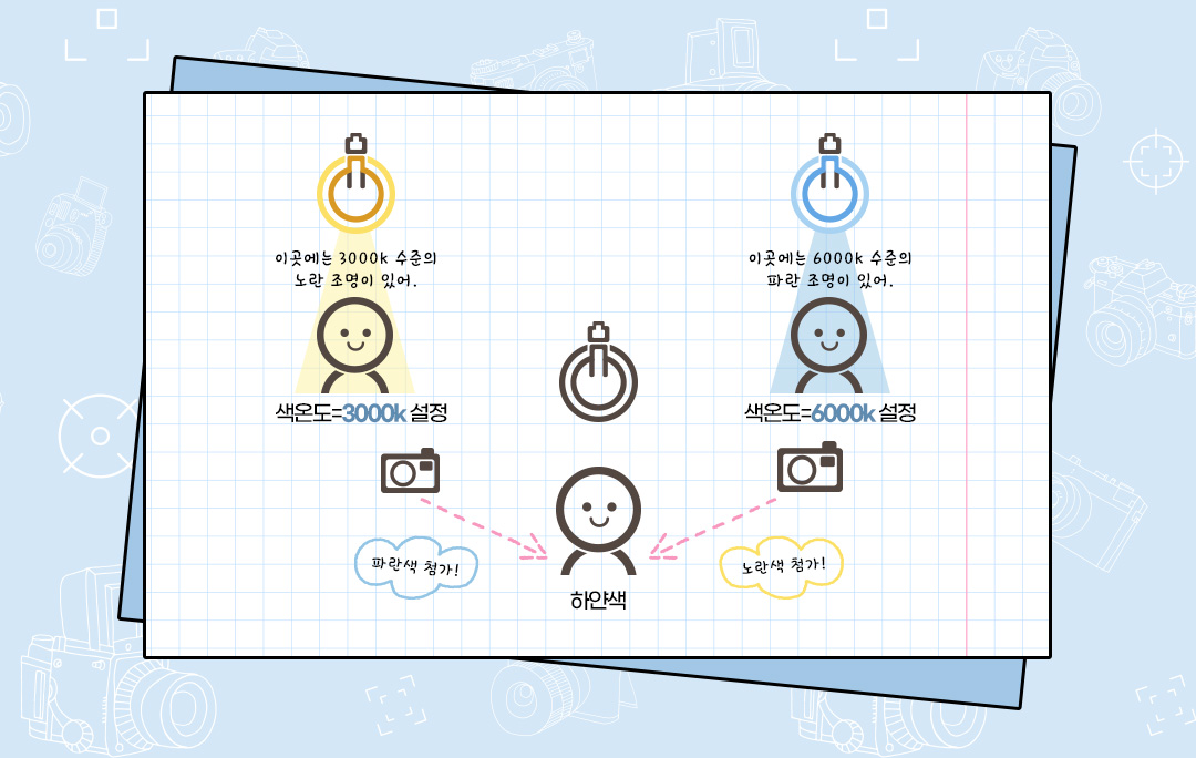 여기까지 화이트밸런스를 이루는 두 가지 요소인 ‘색온도’와 ‘색조’에 대해서 알아봤는데요~ 하지만 사진을 찍을 때마다 직접 색온도와 색조 값을 설정하기에는 너무나 번거롭고 어렵죠.