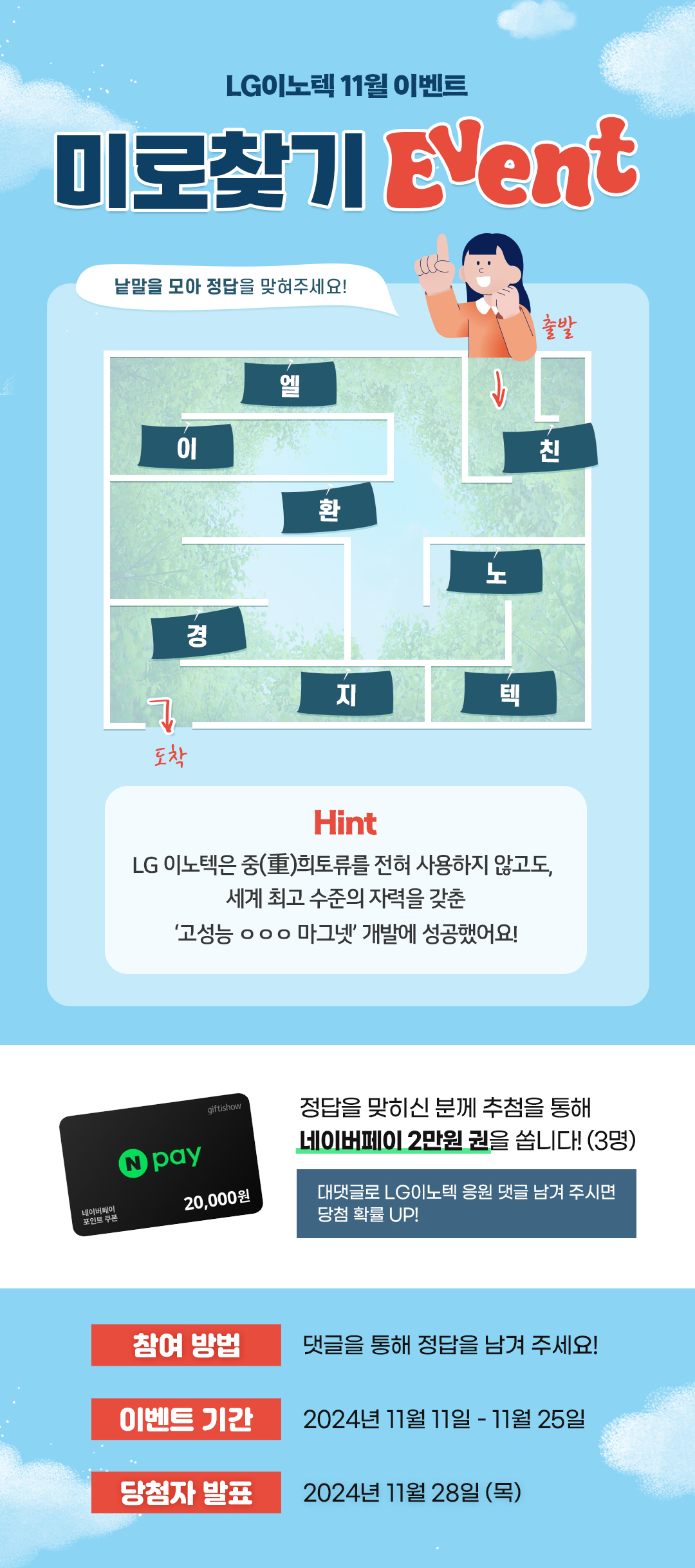 ✨대댓글로 LG이노텍 응원 댓글 남겨 주시면 당첨 확률 UP UP!