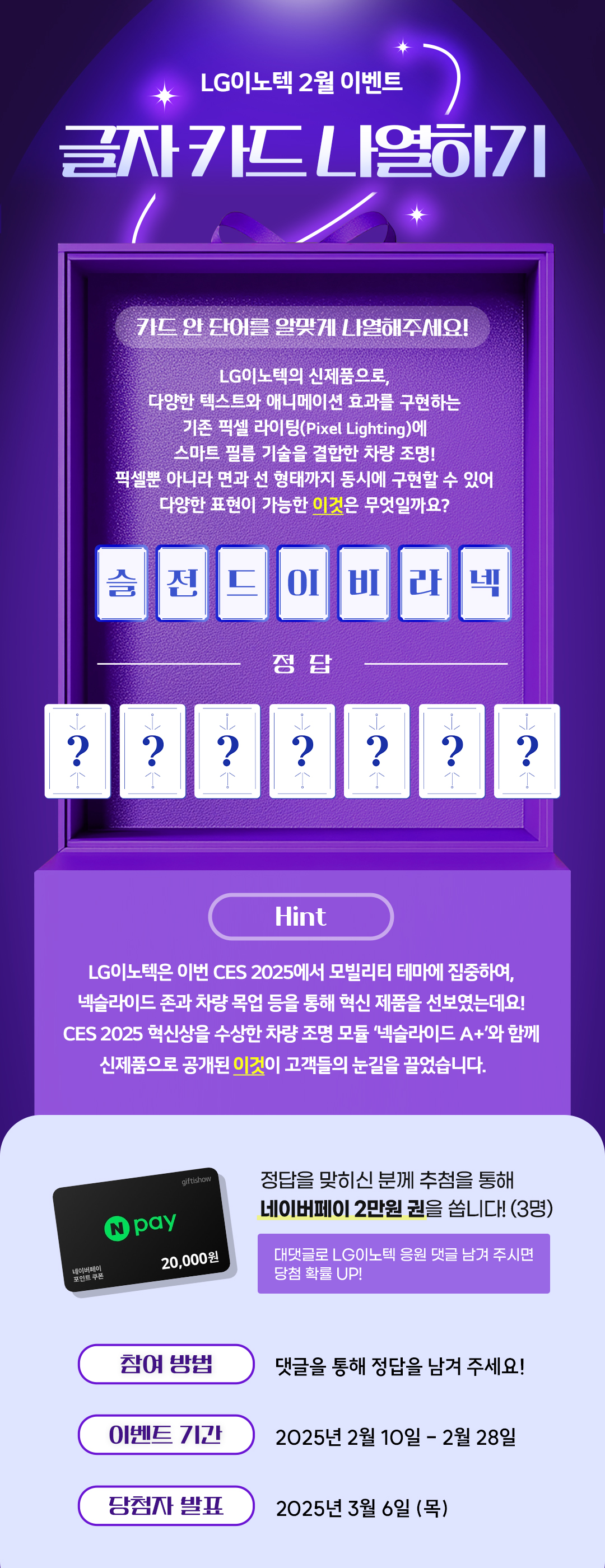 LG이노텍 2월 이노텍 글자 카드 나열하기 EVENT!