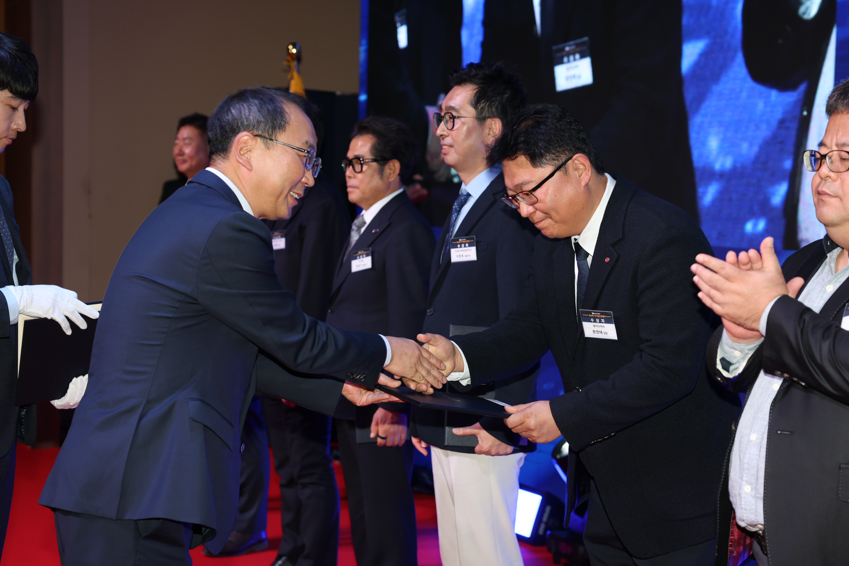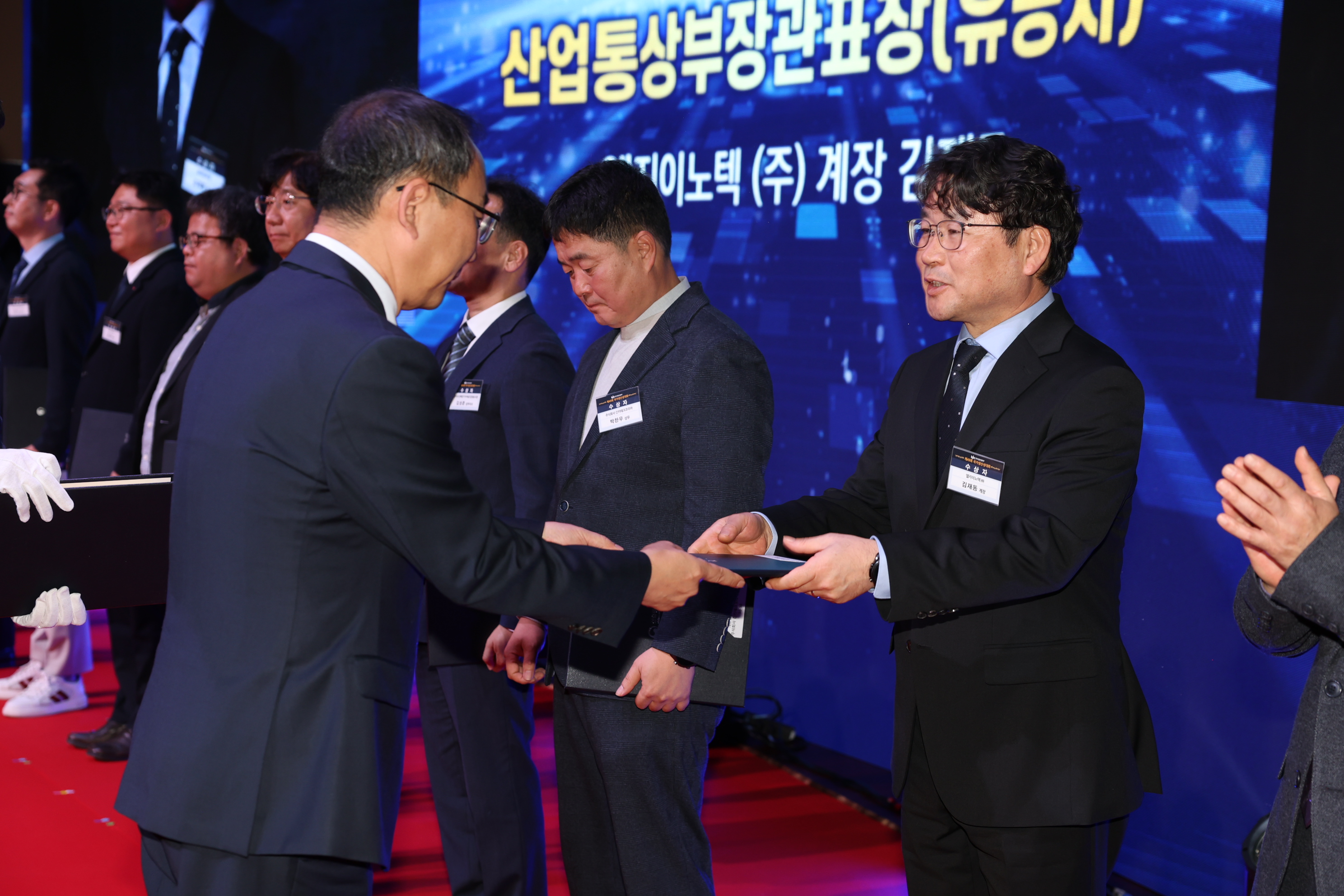지난 11월 4일 산업통상자원부가 주최하고 한국생산성본부가 주관한 ‘제49회 국가생산성대회’에서 광학솔루션사업부 DM개발 문연태 담당과 기판소재사업부 PS생산팀 PS생산3계 김재동 계장이 국가생산성대상 유공자 분야 산업통상자원부 장관 표창을 받았다.