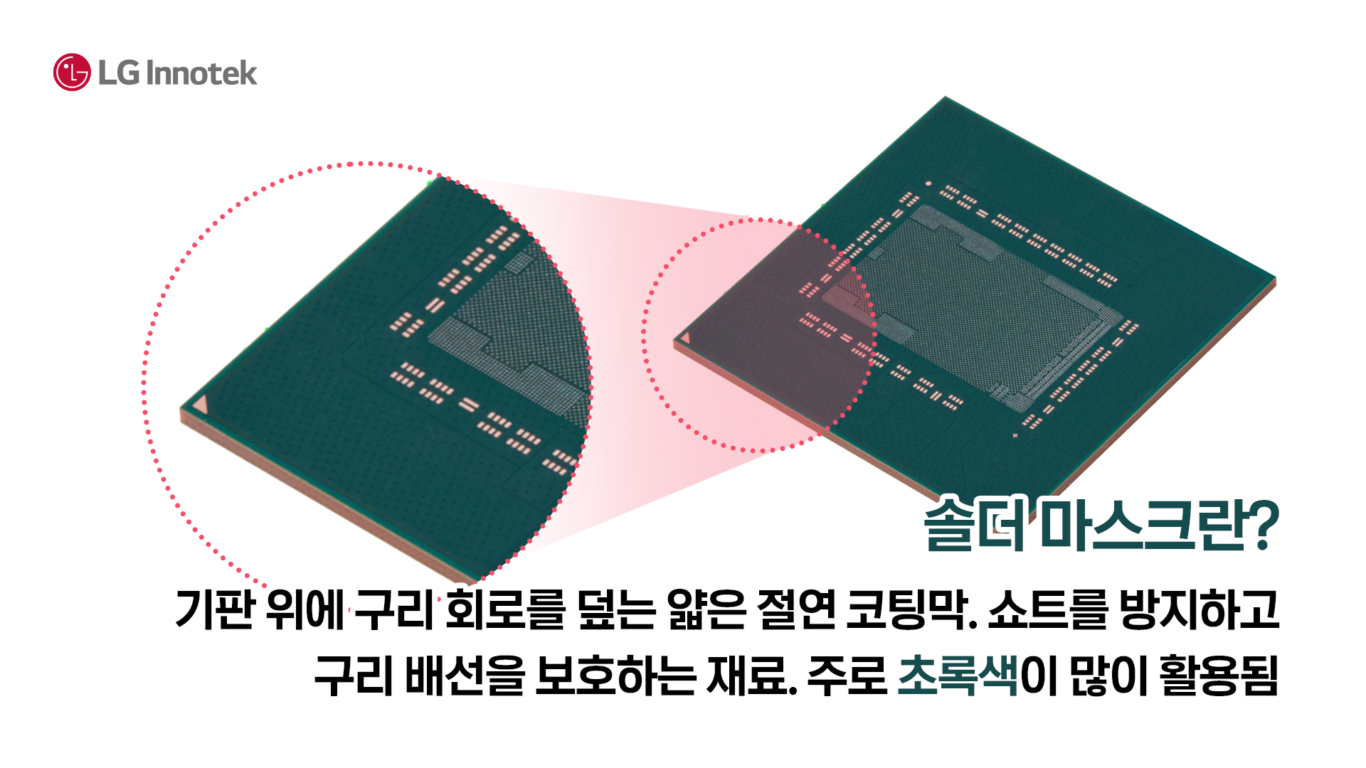 구리 배선을 보호하고 납땜할 때 불필요한 쇼트를 막는 중요한 역할을 합니다.