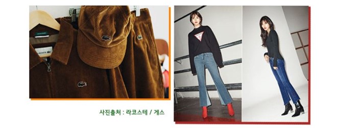 옛날 앨범 사진속에서나 발견할 수 있었던 골덴이 ‘코듀로이(corduroy)’라는 이름으로 재탄생하여 큰 인기를 끌고 있습니다. 더불어, 다시는 유행할 것 같지 않던 일명 ‘나팔바지’가 ‘부츠컷’ 데님이 되어 재유행하는 것도 뉴트로의 한 예로 들 수 있죠.