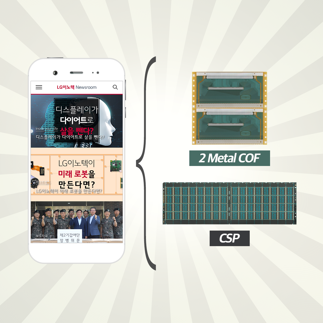 바로 LG이노텍의 부품 2 Metal COF와 CSP가 기여했습니다!