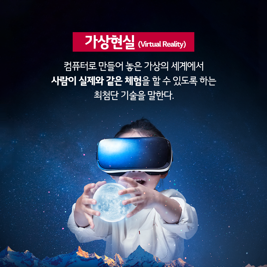 가상현실(VR)은 컴퓨터를 통해 존재하지 않는 현실을 구현해