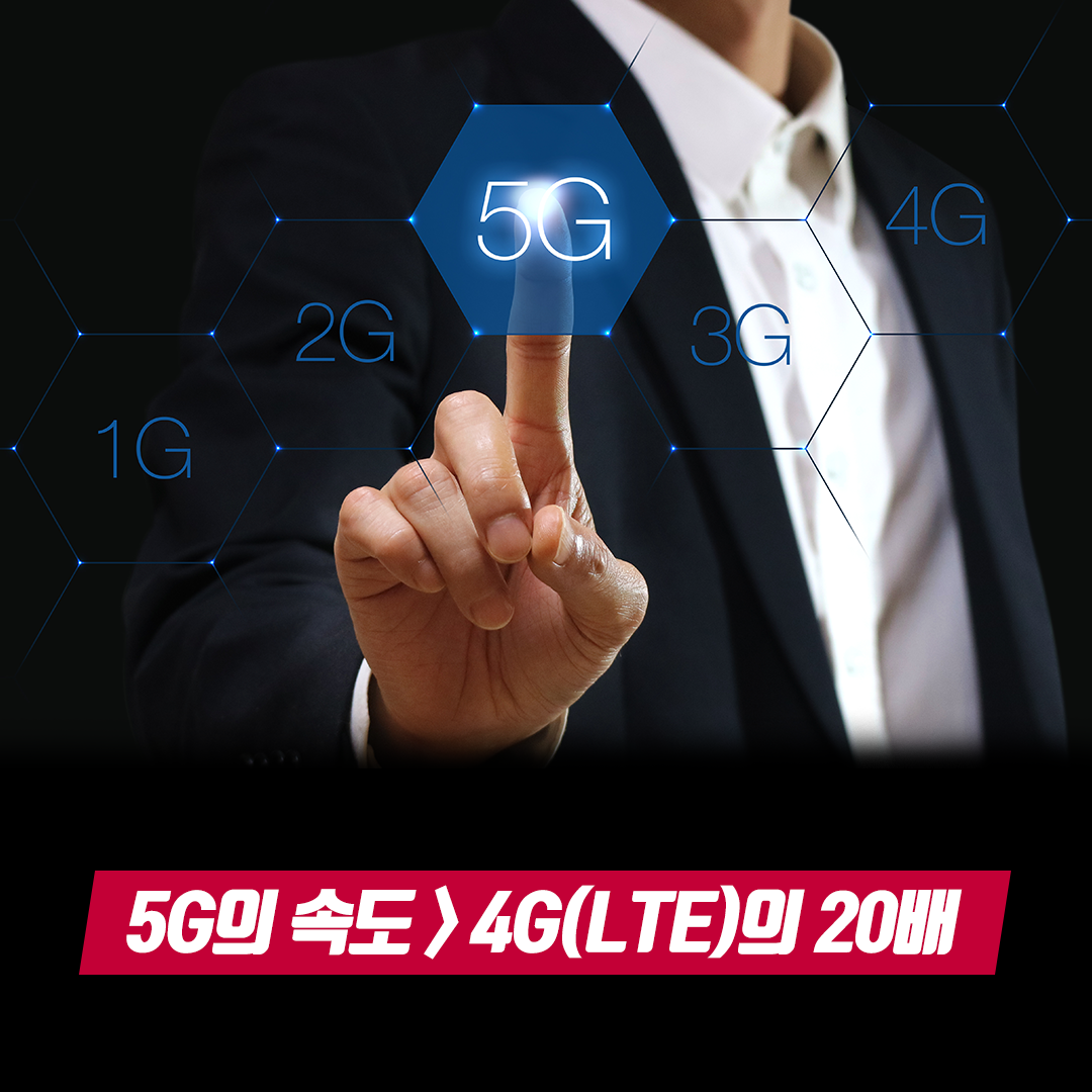 5G는 4G(LTE)의 약 20배 빠른 속도를 가지고 있습니다.