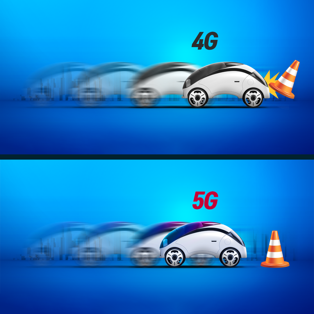 5G의 자율주행 자동차는 천분의 1초만에 빠르게 멈출 수 있지만