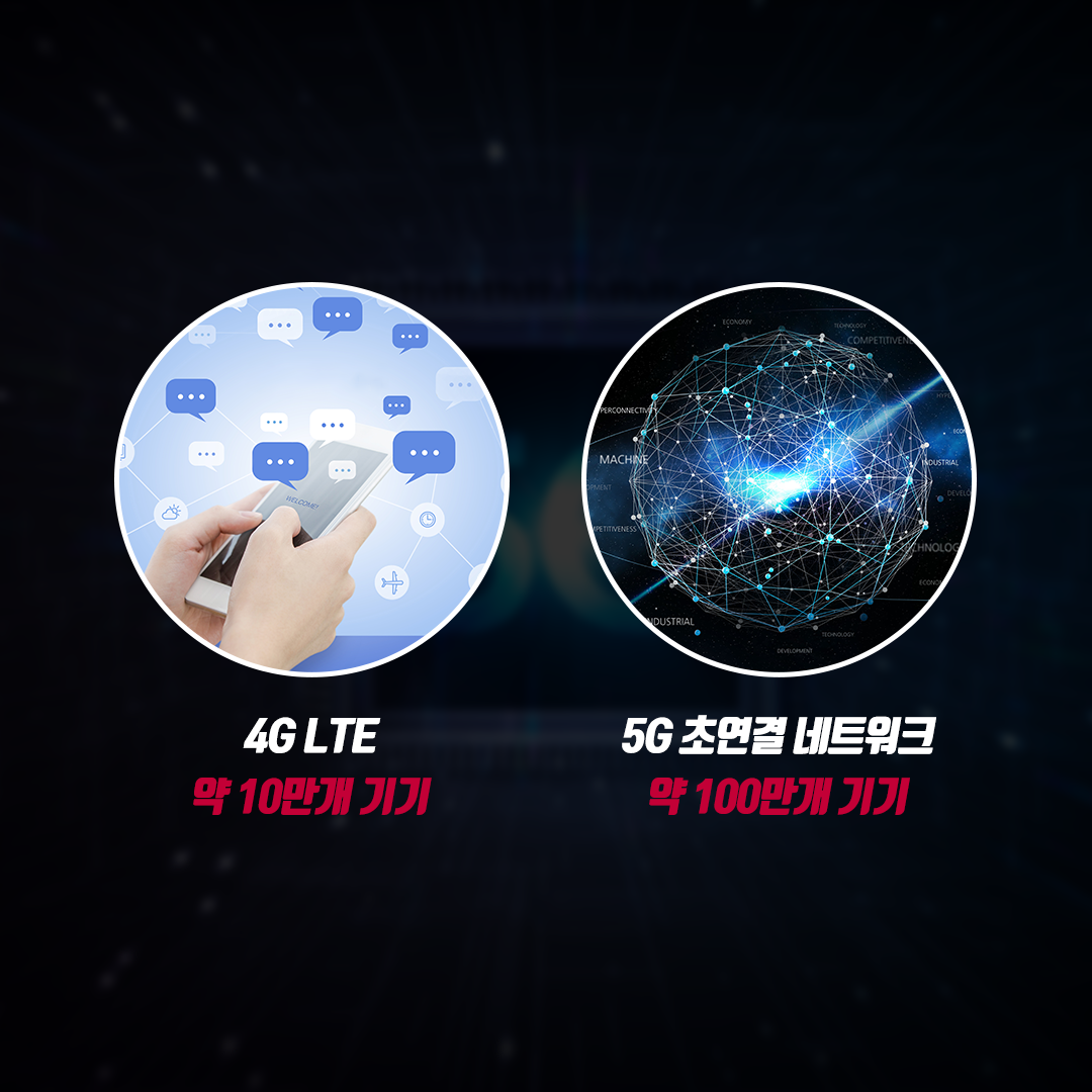 5G는 1km 반경 내에100만 개에 달하는 기기가 동시에 연결될 수 있는데요.