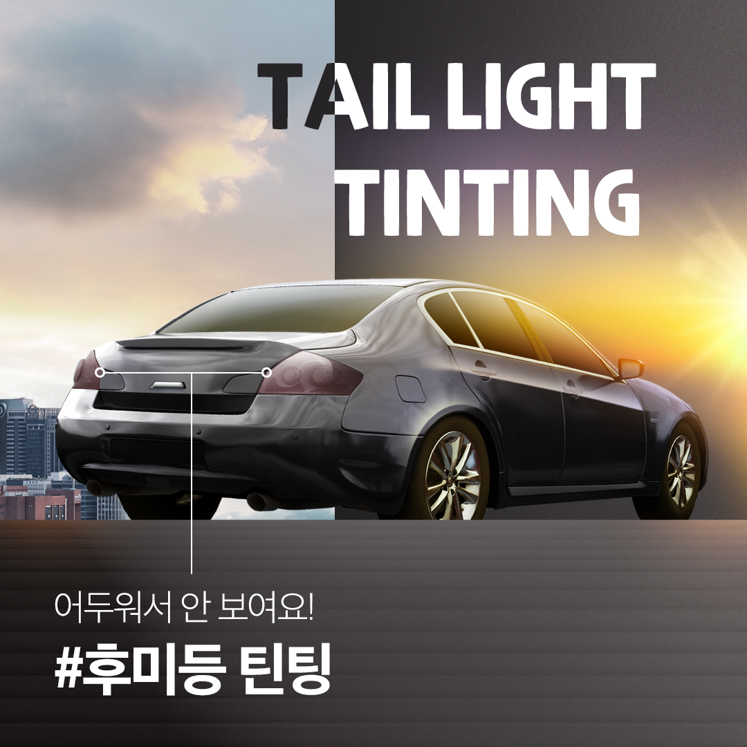 후미등은 운전자가 자동차를 후진하거나(후진 등)브레이크를 밟거나(브레이크등), 가고자 하는 방향을 지시하는(깜빡이) 등의 역할을 하는 조명입니다. 한때 유행처럼 후미등에 틴팅 처리를 해 개성을 표출하는 소비자들이 있었지만, 필름이 후미등을 잘 보이지 않게 만들어 주변 차량을 위험하게 만들 수 있어 많은 사람들에게 질타를 받곤 했습니다. 운전을 하는데 앞차가 차선을 바꾸려는지, 브레이크를 밟으려는지 잘 보이지 않는다고 상상해보세요. 많이 무섭겠죠.