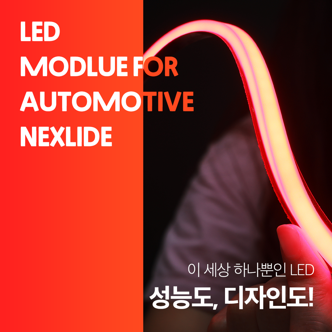 LED Module For Automotive (Nexlide)는 차세대 광원의 의미를 담은 LG이노텍의 차량 조명 브랜드입니다. LG이노텍은 올해 8월 28일에 차량용 플렉시블 입체 조명인 넥슬 라이드-HD를 개발했다고 밝혔는데요. 넥슬라이드-HD는 고무처럼 부드럽게 휘어지는 육면체의 모양의 조명부품으로, 얇은 기반에 여러 개의 LED 패키지를 부착해 주간 주행 등,후미등 같은 차량 외장 램프에 장착해 빛을 내는 광원으로 쓰입니다.