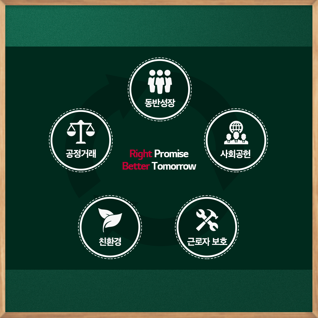 또한 LG이노텍은 지속 가능한 미래를 위해 기업의 사회적 책임을 이행하고 있으며, 경제, 환경 사회 분야 등에서 경영 준수 · 협력사 동반성장 활동 · 친환경 경영 · 공정거래 준수 · 지역사회 사회공헌 활동 등을 통해 사회적 책임을 실천하고 있습니다.