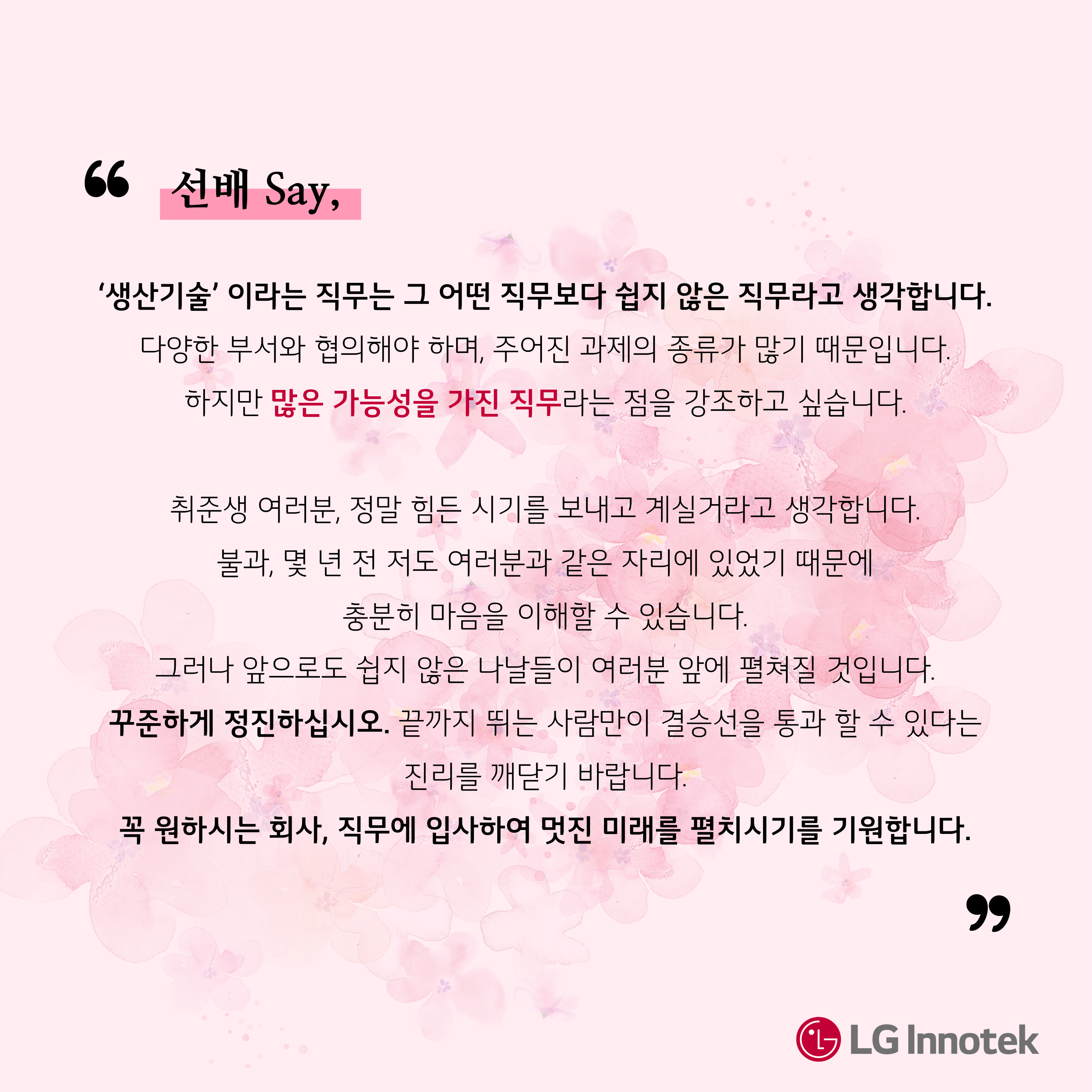 경험에서 우러나오는 생산기술 직무에의 애정이 느껴지시나요?
