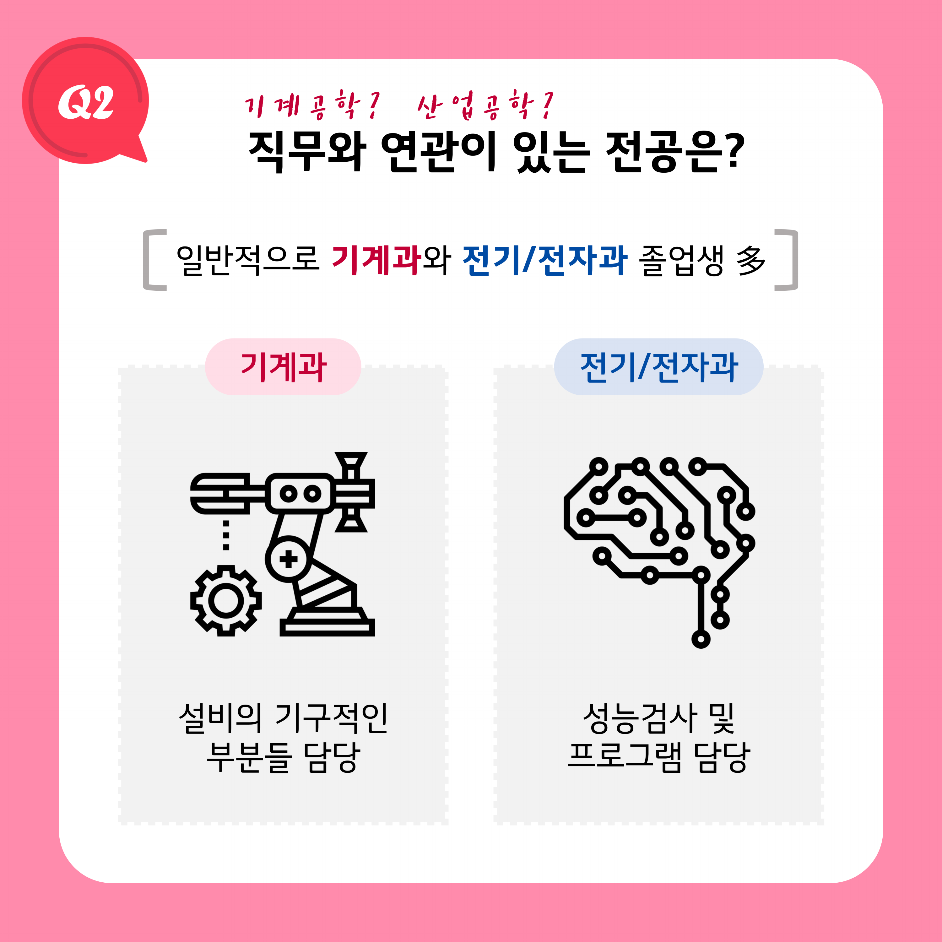 일반적으로 기계과와 전자/전기과를 졸업하신 분들이 다수인데요!