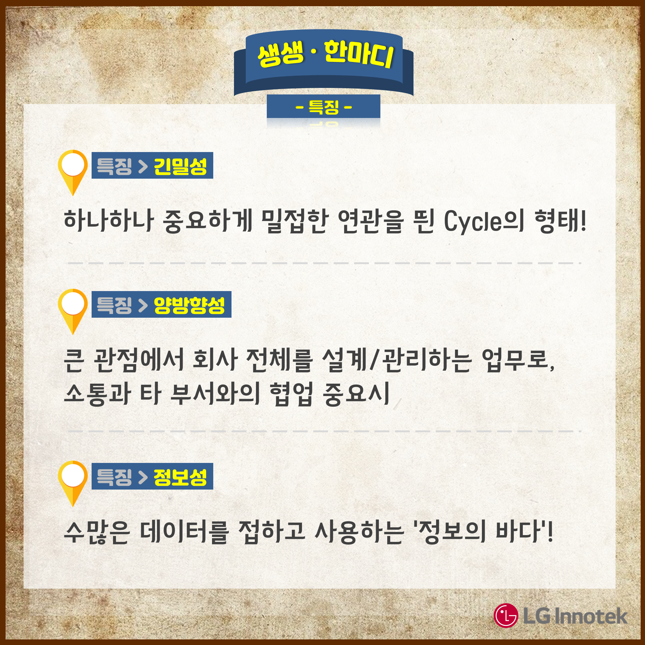 업무 하나하나가 중요하게 서로 밀접한 연관을 띈 사이클의 형태를 가지고 있다고 하네요~!