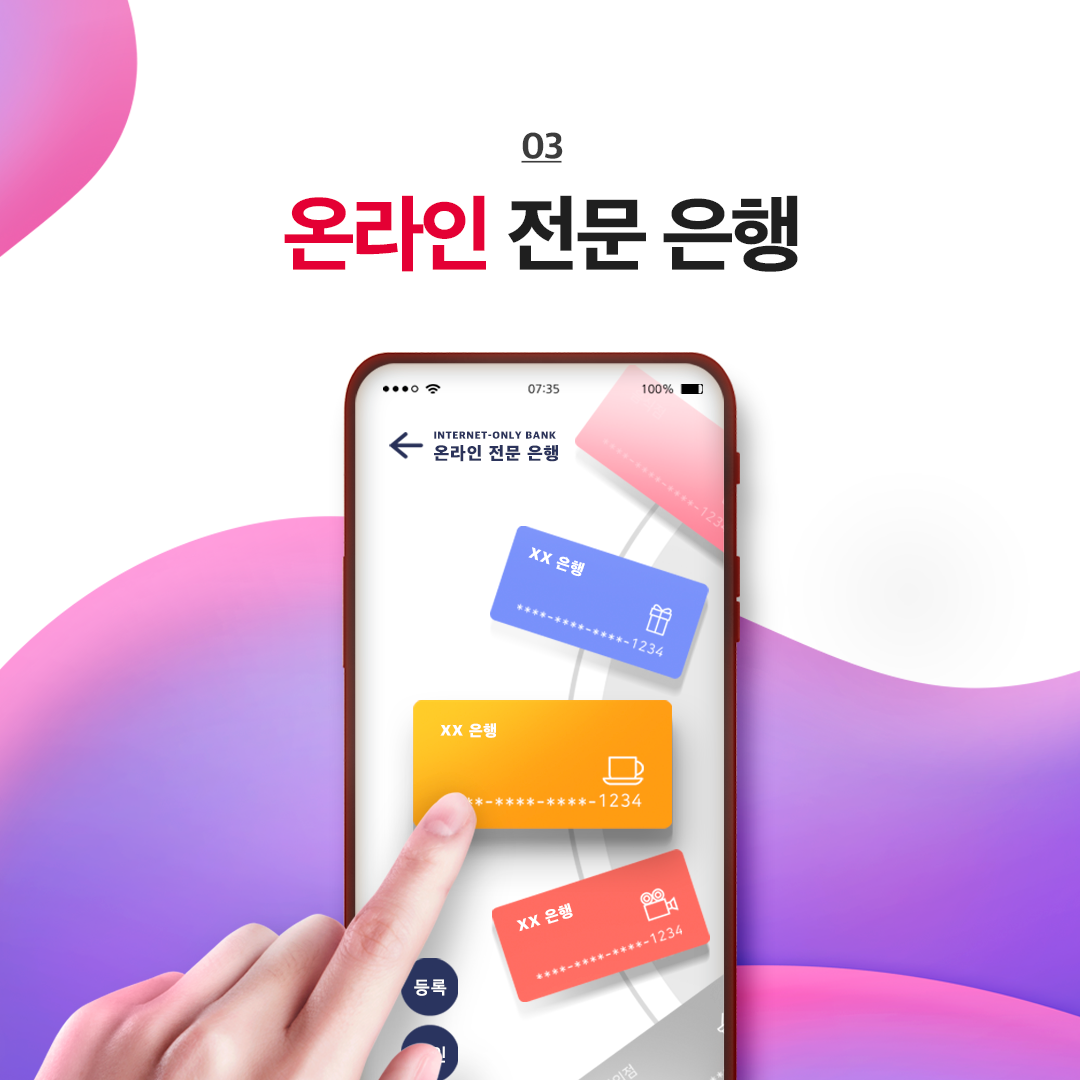 온라인 전문 은행이란 말 그대로 오프라인 지점이 없이 온라인(비대면)으로만 운영되는 인터넷 은행을 말합니다. 흔히 알고 있는 카카오뱅크나 케이뱅크가 대표적이라고 할 수 있습니다.